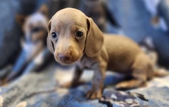 Dachshund puppies include miniature and standard sizes. Sizes will vary depending on the parent dogs.