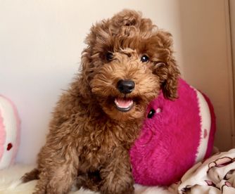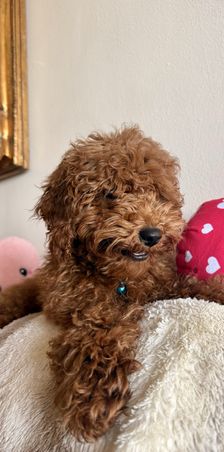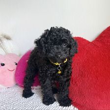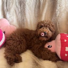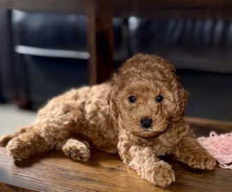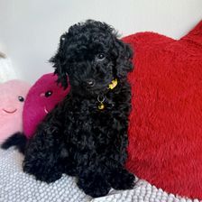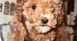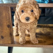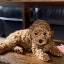 Bustelo is full of affection and energy. He is loyal, loves to adventure, and will curl up next to you whenever he gets the chance. This adorable puppy could be your forever poodle!