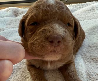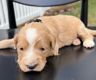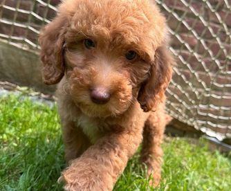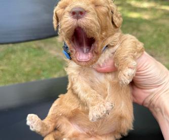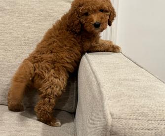 Stella is a lovable Mini Goldendoodle with a big heart and an even bigger personality. With her soft curls, soulful eyes, and playful spirit, she brings joy to everyone she meets. Stella is intelligent, affectionate, and always up for a cuddle or a game of fetch. She’s the perfect mix of loyal companion and fun-loving friend!