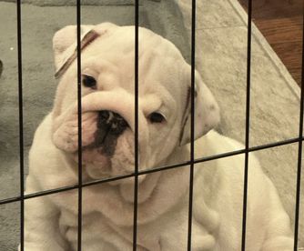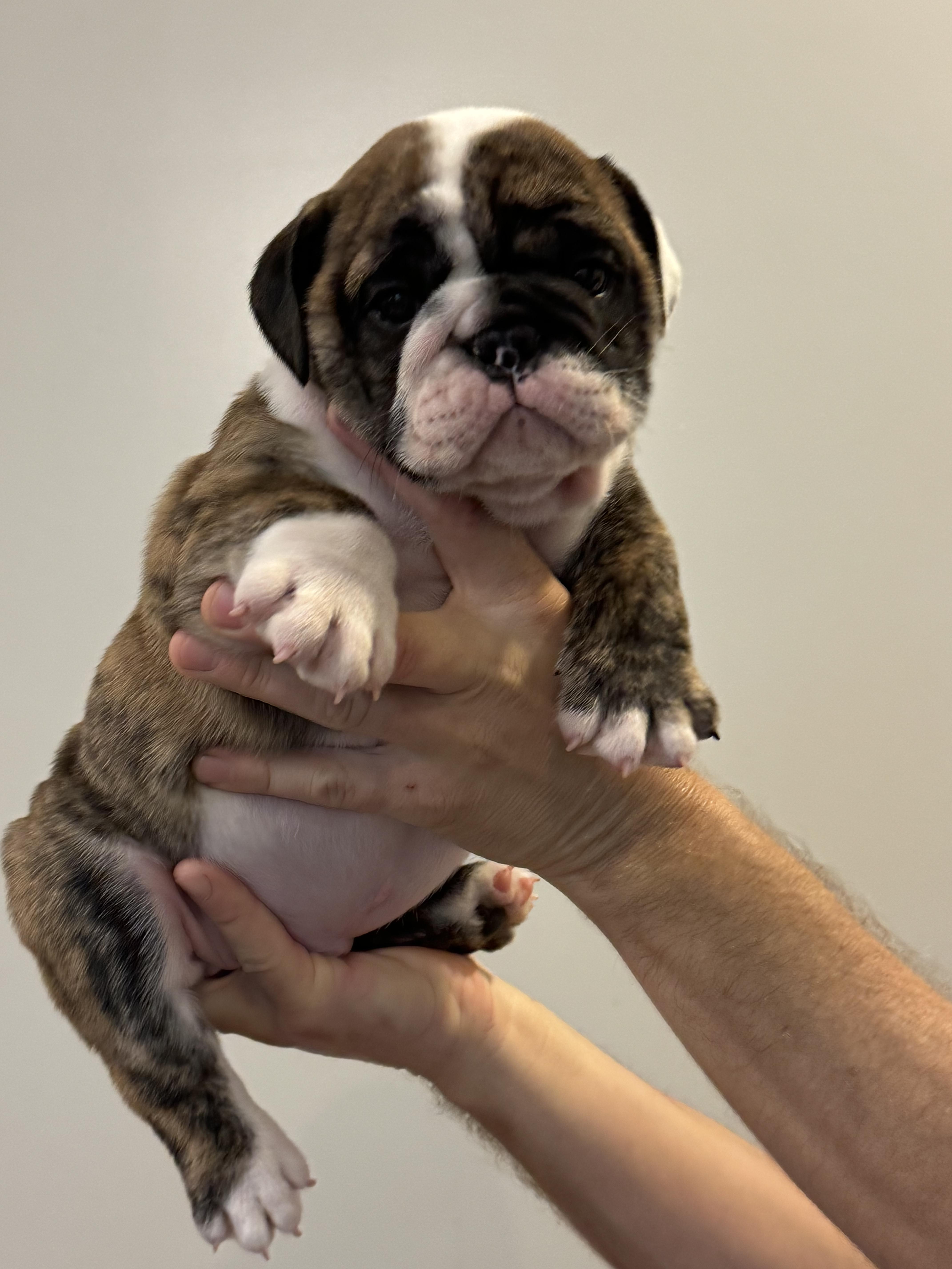 V is a female Bulldog. Carefully selected as a great representative of her breed, Holly decided to make her part of their program. Holly has passed Good Dog’s screening process, which involved a review of their breeding practices, environment, and the mental and physical health of their dogs.