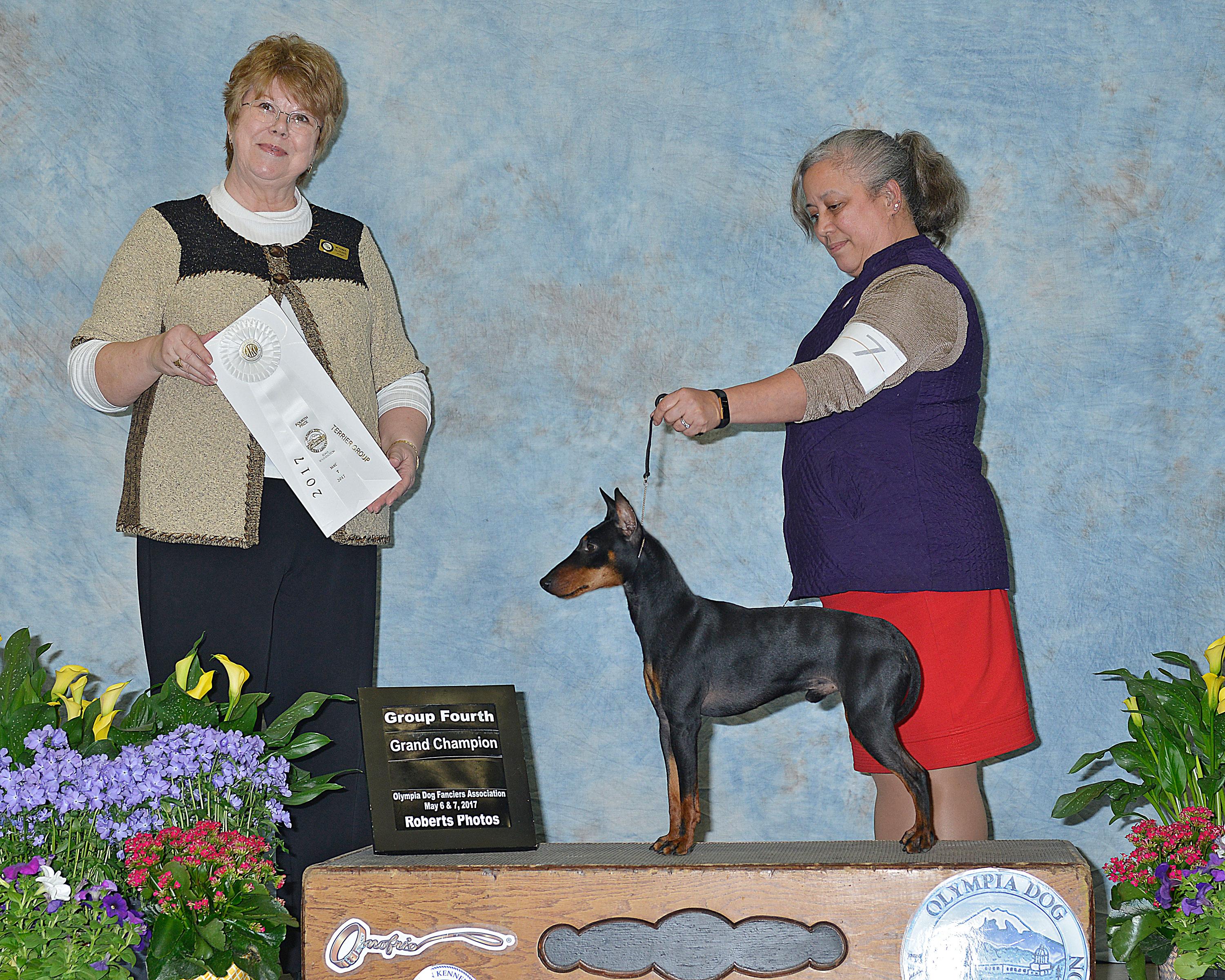 As an adult, I had Doberman and bred a few litters. I have had Manchester for 17 years and have bred many litters. I am an AKC Breeder Of Merit dedicated to producing healthy, happy dogs. I have bred many Grand Champions, Agility Champions, Obedience, Rally, Lure coursing titled dogs.