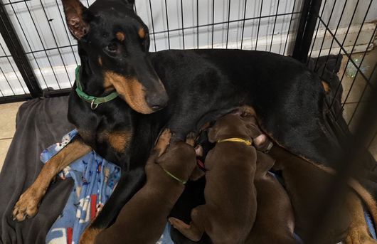 I'm Jennifer S., the breeder behind Jeti Dobermans located in Dallas, GA. We are committed to always responsibly breeding with the best interest of our puppies’ health and longevity at the forefront. We care so much about each of our dogs and make sure to find our puppies the perfect families and individuals with lifestyles that will complement this amazing breed. Our puppies are raised with love in our home, and we strive to help each one grow up with confidence so they are ready to thrive with their new families. They are affectionate, intelligent, and cute as can be!