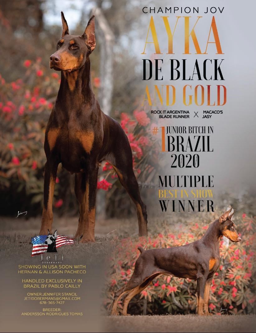 Ayka is a female Doberman Pinscher. Carefully selected as a great representative of her breed, Jennifer decided to make her part of their program. Jennifer has passed Good Dog’s screening process, which involved a review of their breeding practices, environment, and the mental and physical health of their dogs.