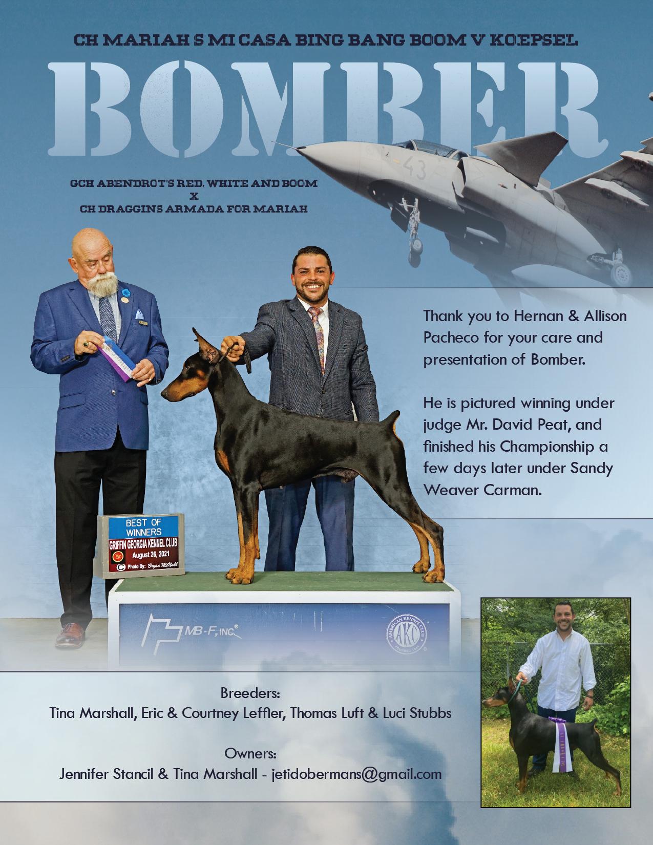 Bomber is a male Doberman Pinscher. Carefully selected as a great representative of his breed, Jennifer decided to make him part of their program. Jennifer has passed Good Dog’s screening process, which involved a review of their breeding practices, environment, and the mental and physical health of their dogs.
