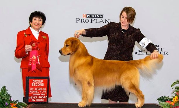 I'm Julie C., the breeder behind Jetoca Goldens located in Iowa. Our dogs excel both in and out of the show ring. They are excellent representations of the breed and have wonderful temperaments. We only breed dogs that are healthy, have wonderful temperaments, and are outstanding examples of their breed. Holding ourselves to high standards is paramount to the well-being of our dogs and to the integrity of our program.
