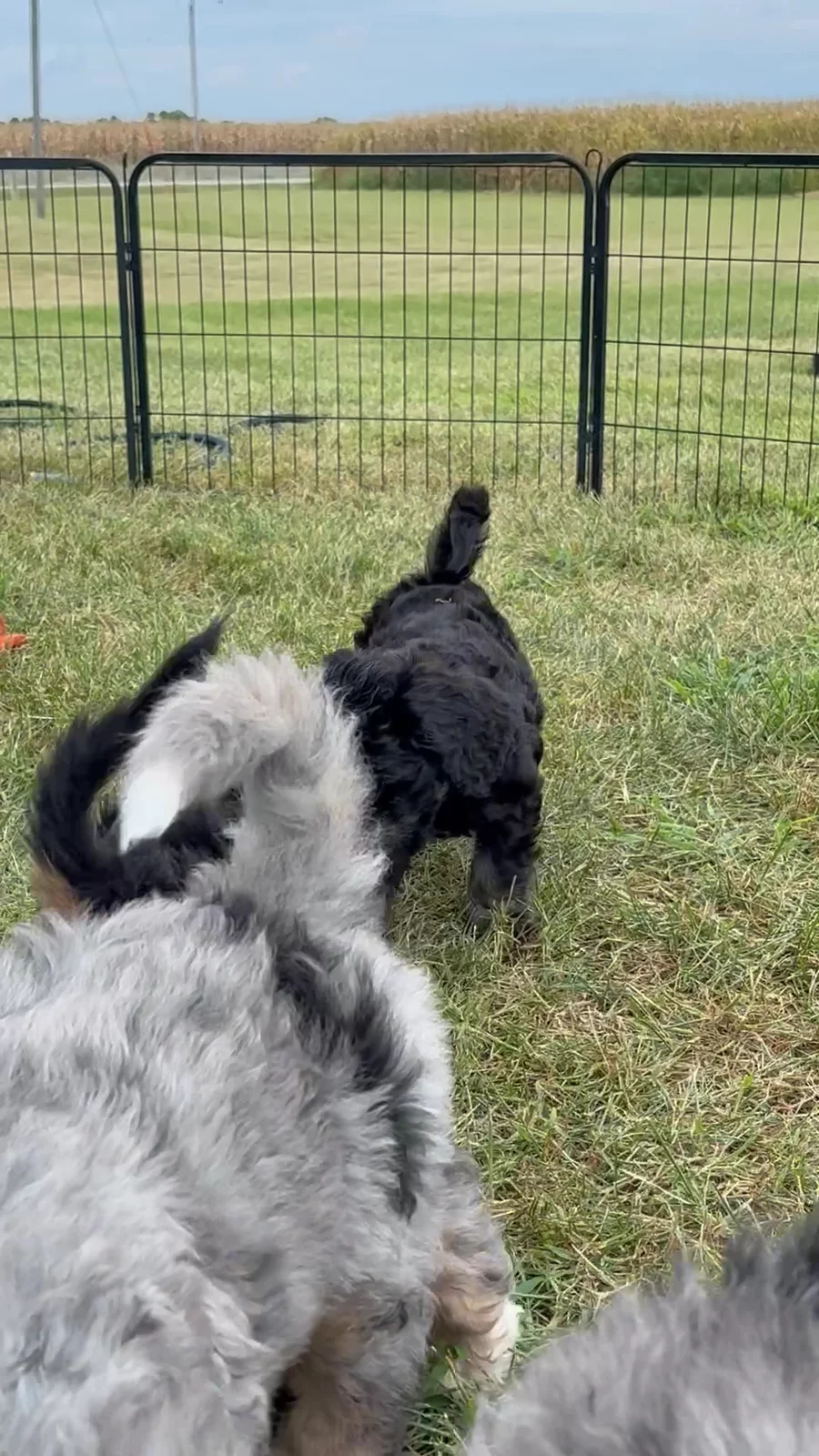 We specialize in raising Goldendoodles and Bernedoodles. Many of our puppies go on to be therapy dogs, as well as service dogs. It is our passion to raise well rounded family companions. Our puppies are handled from day one, and are exposed to children, household sights and sounds, other pets, and daily training. You will not be disappointed with one of our puppies!