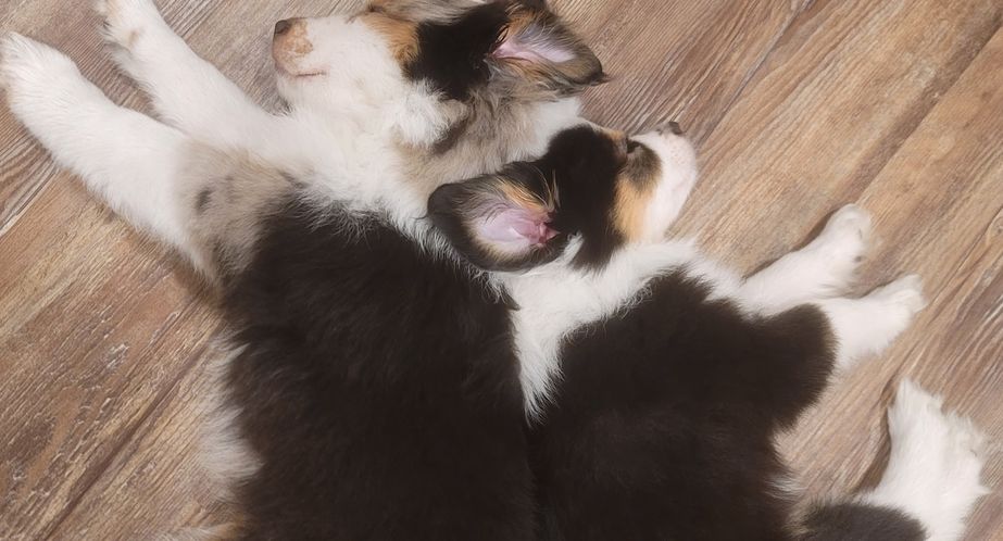 Miniature Australian Shepherd puppies include blue merle, black tri, and red merle. Colors will vary depending on the parent dogs.