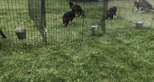 Our puppies include black and tan and black and red. Colors will vary depending on the parent dogs.