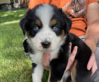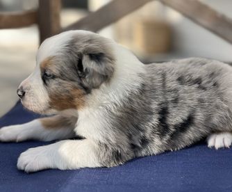 Our puppies include blue merle and black tri-color. Colors will vary depending on the parent dogs.