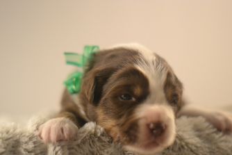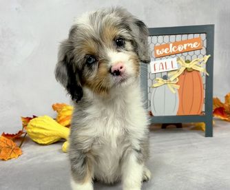 Our Poodle puppies include apricot, red, and parti. Miniature Australian Shepherd puppies include blue merle and red merle. Aussiedoodle puppies include blue merle, red merle, black and white, black tri-color, and red tri-color. Colors will vary depending on the parent dogs.