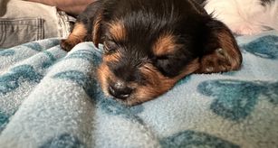 I'm jennifer b., the breeder behind j&j yorkies located in New Bedford, MA. our little guys are feisty an energetic love getting into what ever you are doing an maybe a little more they make wonderful additions to any home small or large these unique parti yorkies are special there from a gene called ss which give them a trifecta color of black white an tan one is waiting for you.