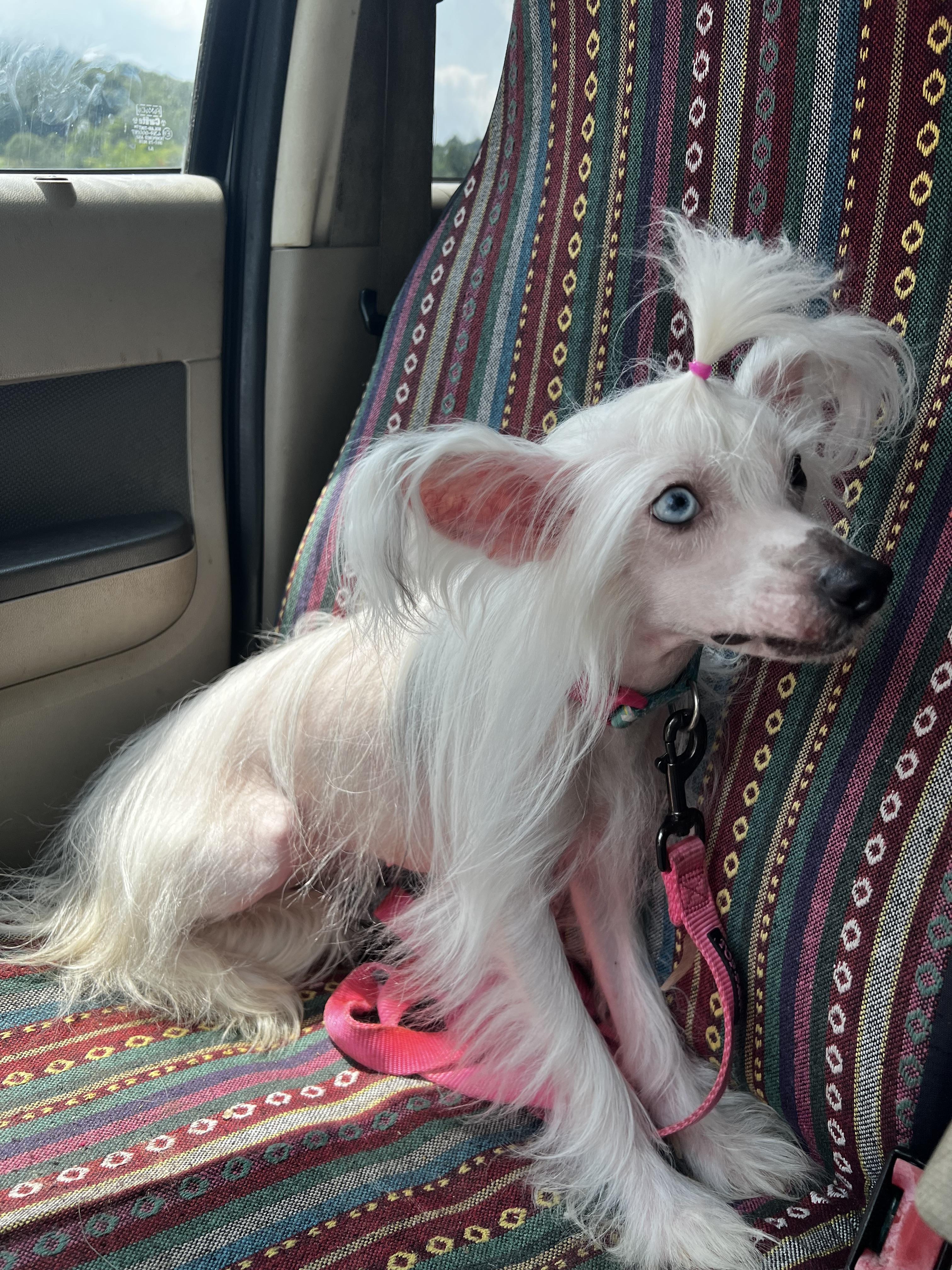 Aster is a female Chinese Crested. Carefully selected as a great representative of her breed, Kimberly decided to make her part of their program. Kimberly has passed Good Dog’s screening process, which involved a review of their breeding practices, environment, and the mental and physical health of their dogs.