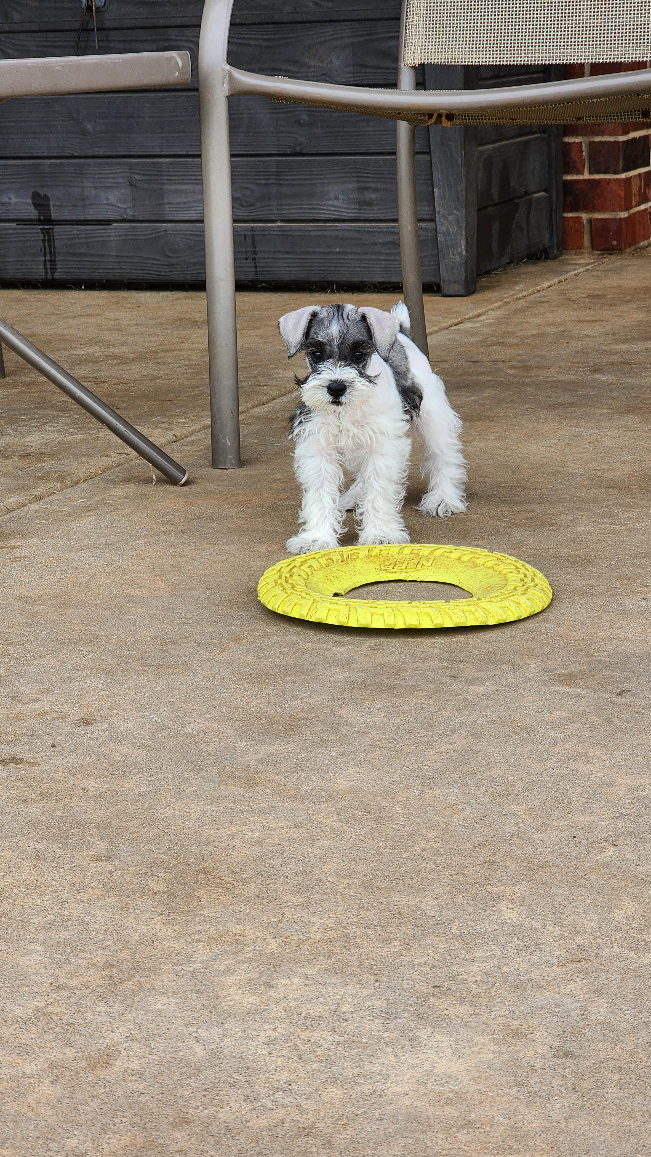Our family recently had the most wonderful experience with J&K’s Miniature Schnauzers, and I can’t recommend them highly enough! From the very first interaction, it was clear that this breeder is passionate about their dogs and committed to providing a nurturing environment for both the puppies and their families. The communication was outstanding. Jed and Karrie took the time to answer all of my questions and provided thorough information about our Mini Schnauzer we selected, including their temperament and care requirements. It was evident that they truly care about matching each puppy with the right home, and they guided me through the entire process with patience and expertise. The puppies were lively and playful, clearly raised in a loving environment. J&K’s commitment to socialization was apparent, as the puppies were well-adjusted and friendly, making it hard to just take one! After selecting my puppy, I received a wonderful puppy pack filled with essentials, including food, toys, and all medical information. J&K continued to provide support even after I brought our new furry baby home, checking in to see how we were settling in and offering valuable advice. It’s rare to find breeders who are so dedicated to the health and happiness of their dogs, and J&K’s Miniature Schnauzers exemplify this. Their passion shines through in every aspect of their breeding program, and I feel incredibly lucky to have found our best friend through them. If you're looking for a Miniature Schnauzer, look no further than J&K’s! They truly are the best!
