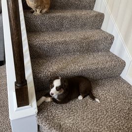 Doc is a male Miniature Australian Shepherd. Carefully selected as a great representative of his breed, Lisa decided to make him part of their program. Lisa has passed Good Dog’s screening process, which involved a review of their breeding practices, environment, and the mental and physical health of their dogs.