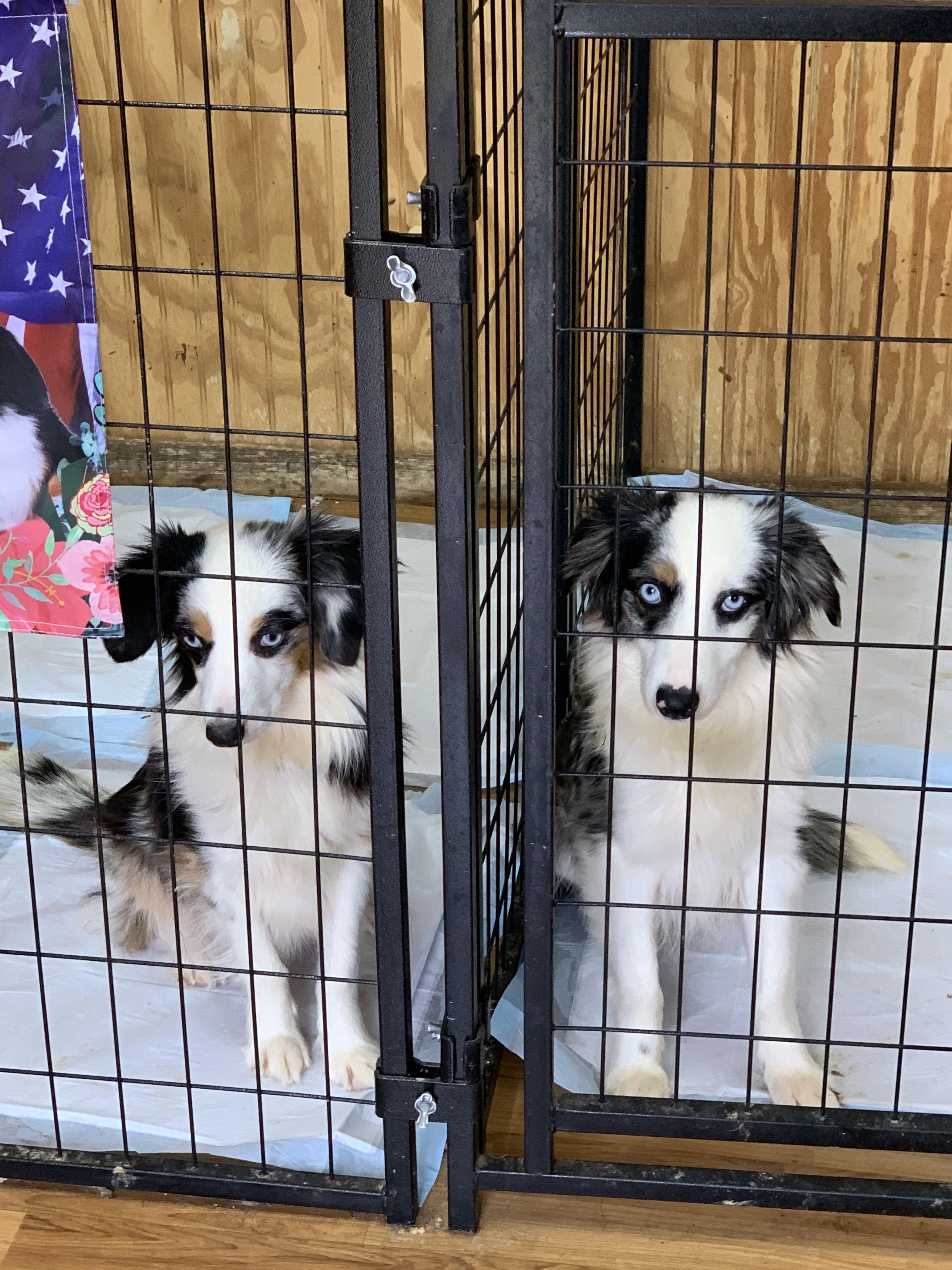 Our puppies include blue merle and red merle. Colors will vary depending on the parent dogs.