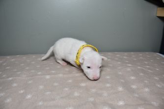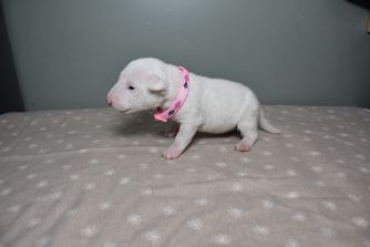 Elsa is a female Miniature Bull Terrier. Carefully selected as a great representative of her breed, Jose decided to make her part of their program. Jose has passed Good Dog’s screening process, which involved a review of their breeding practices, environment, and the mental and physical health of their dogs.