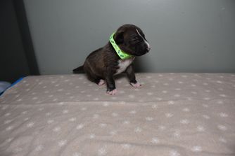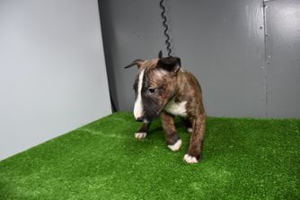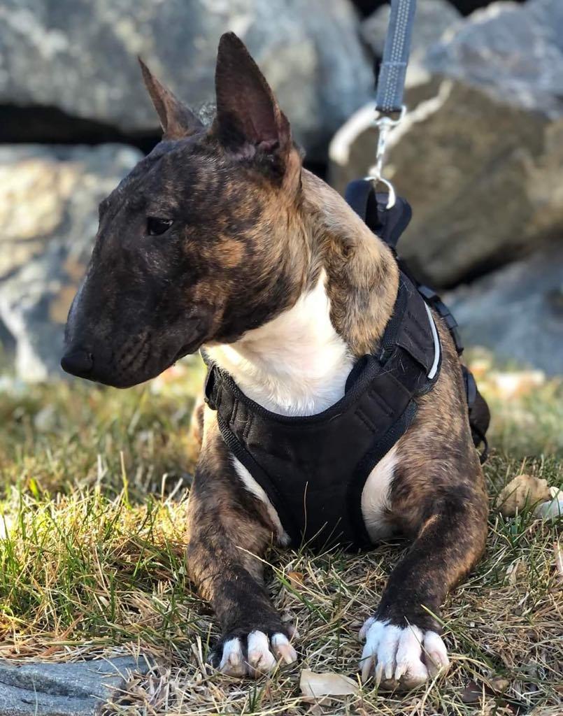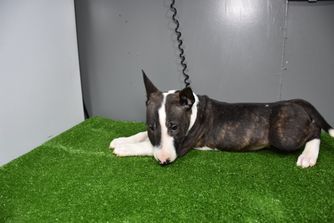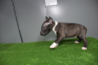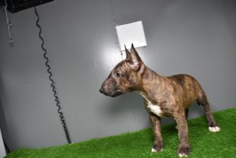 Maz is a female Miniature Bull Terrier. Carefully selected as a great representative of her breed, Jose decided to make her part of their program. Jose has passed Good Dog’s screening process, which involved a review of their breeding practices, environment, and the mental and physical health of their dogs.