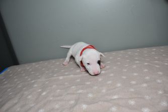 Ruby is a female Miniature Bull Terrier. Carefully selected as a great representative of her breed, Jose decided to make her part of their program. Jose has passed Good Dog’s screening process, which involved a review of their breeding practices, environment, and the mental and physical health of their dogs.