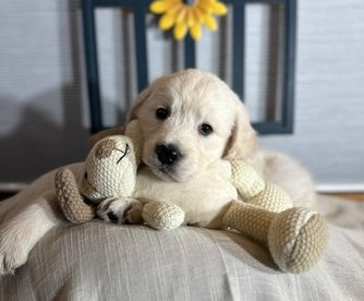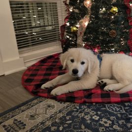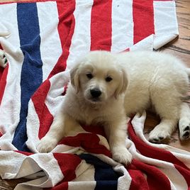 I recently got a puppy from Johanna. Golden and I had the best experience with Jim and Jackie throughout the whole process. They were both very patient with me as I had to delay, picking up my puppy twice prior to actually driving from Massachusetts to Georgia to finally get to pick up a puppy The entire situation of picking up the puppy meeting them on time then being patient payments they gave a cute little puppy bag. They had a collar a blanket. They gave me some food little cup to measure the food and all the paperwork they were extremely organized very pleasant people I would definitely get a second puppy within the next two years This puppy is so calm he’s well behaved. He’s extremely brilliant. He already knows how to sit. He already knows how to come. He’s extremely great on the leash. It took a couple of attempts and only after two attempts on the leash he knew to stay on the side of me and no pulling on the leash. He is absolutely beautiful. He’s in great health. He’s gonna be a big boy and he’s so pleasant. this puppy is the best puppy I’ve ever had easy to train great to look at. He’s so so cute. His personality is so cute and I just am extremely grateful for Jim and Jackie being patient with me so I could finally get this beautiful little puppy. I am so excited for my journey with him and definitely a journey back to Jim and Jackie for another puppy within two years, thank you so much, Johanna Golden’s. I adore you guys and I’ll be back soon.