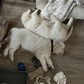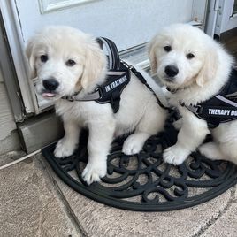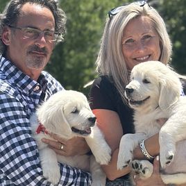 When we unexpectedly lost our beloved Golden Retriever, Duke, in the spring of ‘24, we knew that finding our next furry child(ren) wasn’t going to be easy. However, after grieving for more than a year, and allowing the spirit of Duke to guide us, we opened up our hearts and decided upon a pair of English Cream Golden Retrievers. What we didn’t expect in this endeavor was to be blessed beyond our deepest prayers in finding JLB’s Yonah Goldens with Jim & Jackie. Not only were they both responsive in our requests and interest, but their genuine, authentic, caring approach has been consistent throughout our entire experience. Their commitment is evident in all they do. From the facilities they’ve built for the sole purpose of puppy raising and caring for their dames and sires, to the ‘cuddle house’ situated on the property that enabled our adoption day process to be comfortable for the puppies and smooth and seamless for our family. Murphy and Theo (2 males from Max & Lola litter born on May 1st) have been with us for almost a week now. They are BOTH well adjusted, confident, adaptable, healthy, with precious sweet personalities and are absolutely GORGEOUS! It is so apparent that they spent their first 8 weeks surrounded by love and support. They have been easy to crate train, potty train and are on their way to becoming 2 of the best family companions that will spread joy and comfort in their future as a team of therapy dogs. We are absolutely THRILLED with our decision and choice to work with Jim and Jackie of JLB’s Yonah Goldens. We are hopeful they will be friends for life as we plan on continuing our English Cream Golden Retriever journey. Truly blessed. Ursula, Rich, Theo and Murphy