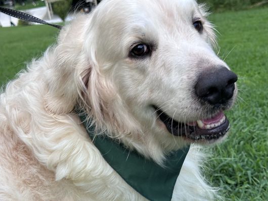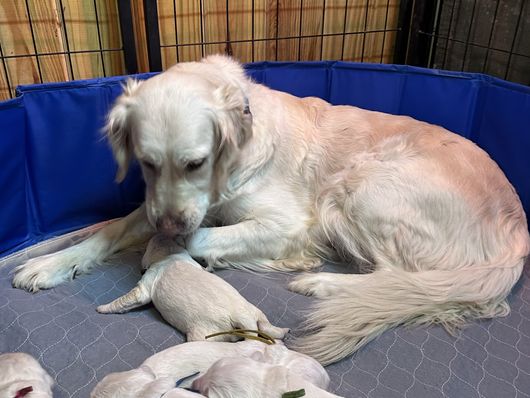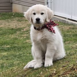 My experience with Jim could not have been better. He responded to my messages very quickly, usually within minutes. He answered all my questions and provided any data I requested. I live about 600 miles away, so he did a video walkaround with me, showing me the pups and the adults. They live in an incredible two-level barn with beautiful outdoor areas on a gorgeous property. There is a small furnished outbuilding where new parents can meet with their pups while taking care of the paperwork. I suggested to Jim that he could put in some RV parking and have a destination where people could visit the beautiful dogs and play and walk with them. The puppy adoption process was super simple. He kept me informed along the way and let me know how the pups were doing. On adoption day (Dec 9), I drove to Yonah and met with Jim and visited with my pup. I also was able to see the beautiful property and several amazing adult dogs including my pup's father. I especially love the larger English Cream goldens that Jim raises, and I had a great time bonding with my little guy and getting to know Jim. I wish I wasn't 600 miles away, or I would be stopping by regularly to hang out and visit with Jim and the dogs. Merlin has been with me 3.5 weeks now. I've had goldens my whole life. I could not be happier. He's an incredibly cute little guy. Growing like crazy. Very active, very inquisitive, but also very loving and cuddly. Also, amazingly sociable. It definitely shows that Merlin grew up with a lot of brothers and sisters. He loves every person and dog that he meets. No fears or unusual behaviors at all. We are doing puppy party socialization classes, and he is a perfect citizen joining in the play without being too fearful or too rough. He is learning to walk on the leash and loves roaming my fenced backyard. It has been a cold winter so far in VA and he loves being outside no matter what the temperature. A true polar bear. I am also introducing him to water when weather permits. My last golden, who passed about a year ago, loved the NC outer banks and dock diving at a local winery. So, in summary, Jim is a superb breeder who provides personal attention and who has invested a lot of time and money in his business. As word gets out, he's probably going to become a lot busier, but it'll be worth the wait.