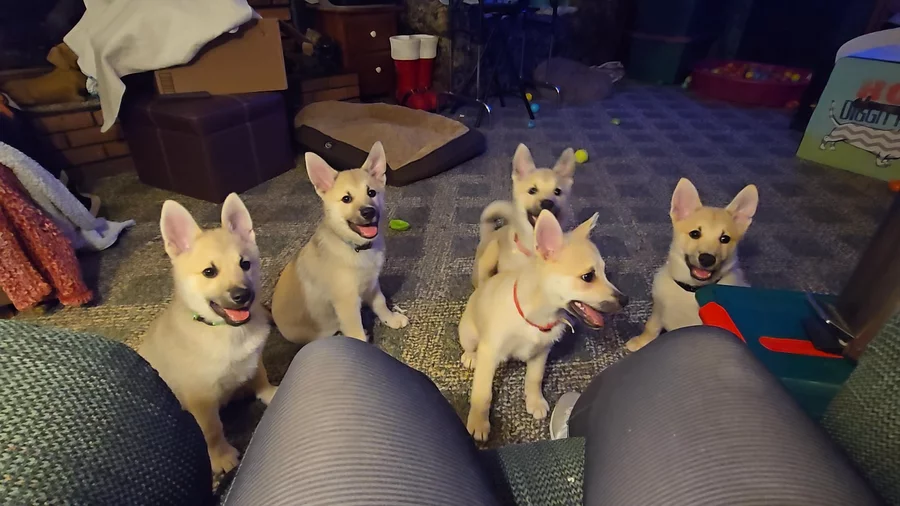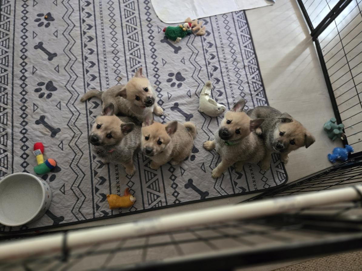 Our Dachshund puppies include red, black and tan, and dapple. Norwegian Buhund puppies are wheaten. Colors will vary depending on the parent dogs.