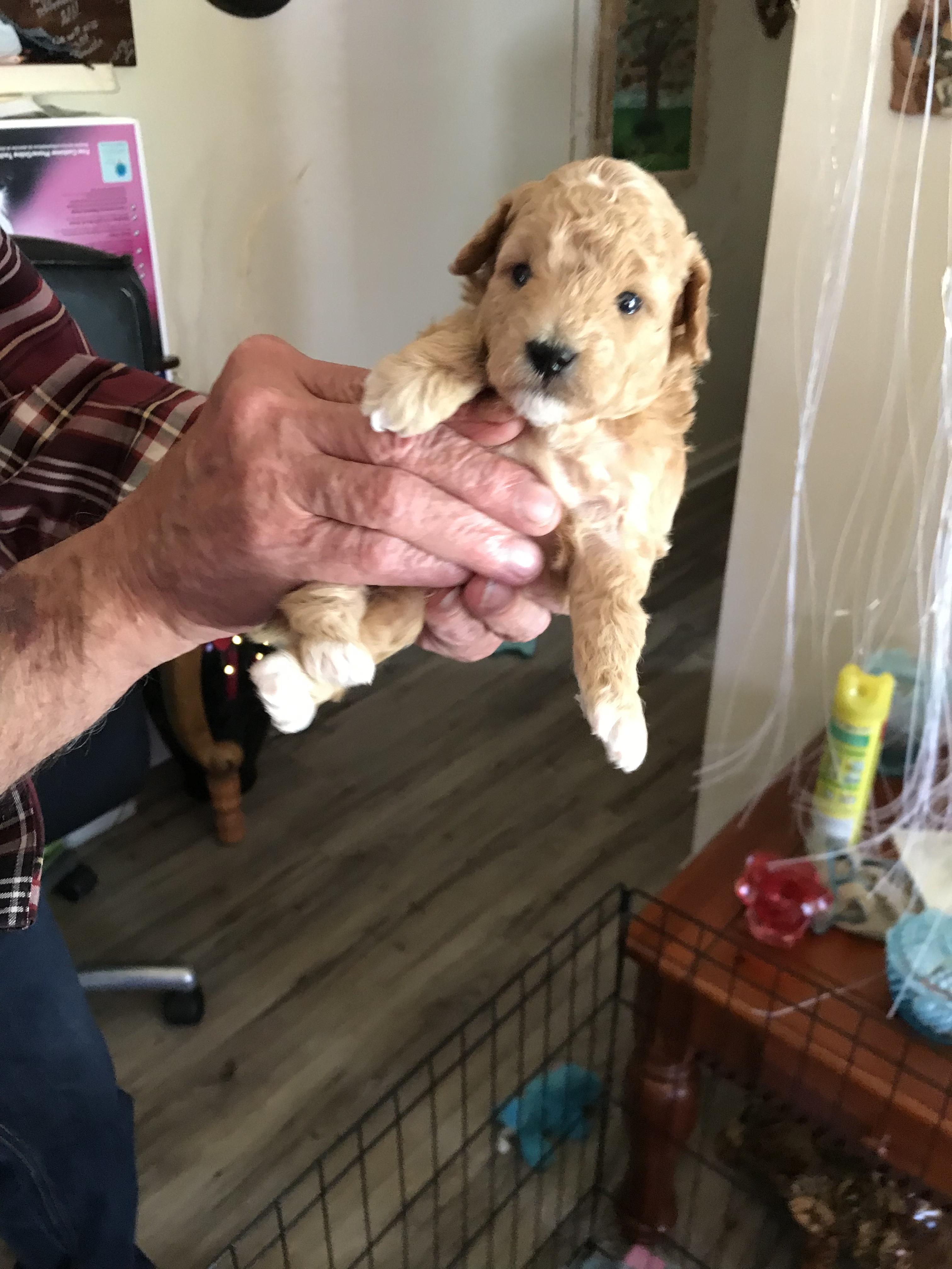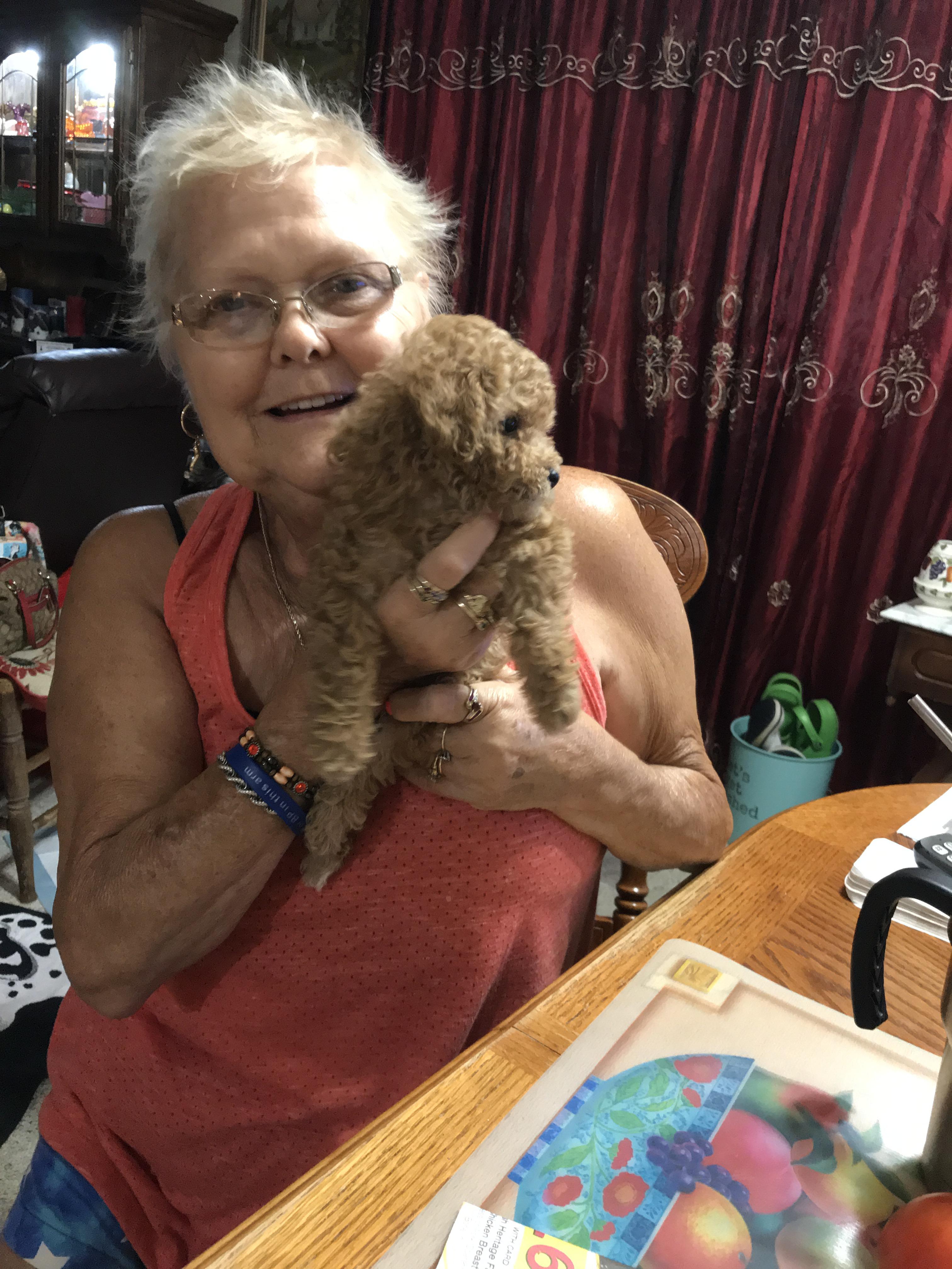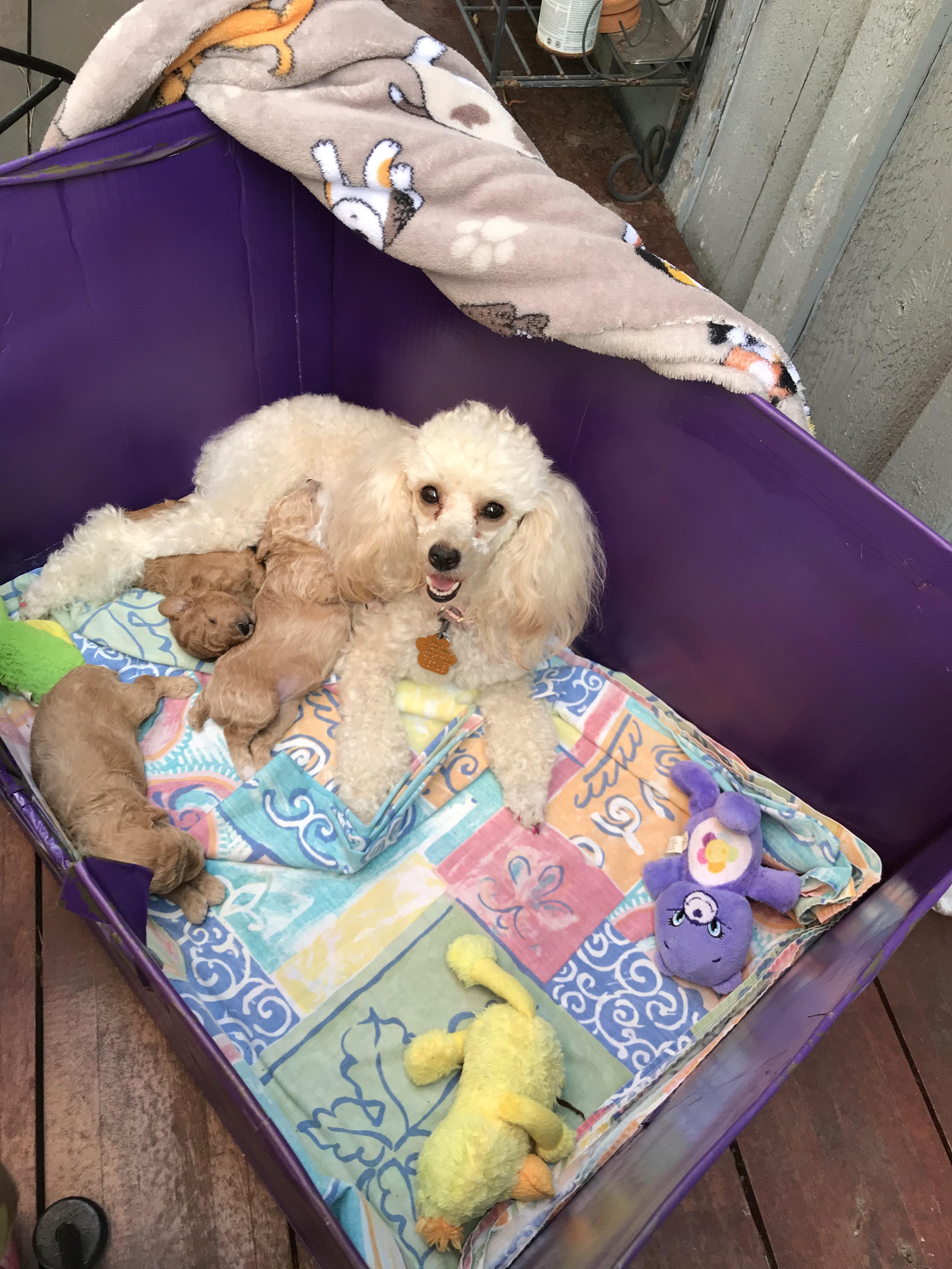 Rosey is apricot dob is 3/9/2018 she’s got a sweet tempermant but is very jealous with others with her owner because she was first in the family of poodles at our house lol she’s a fantastic mommy to her babies