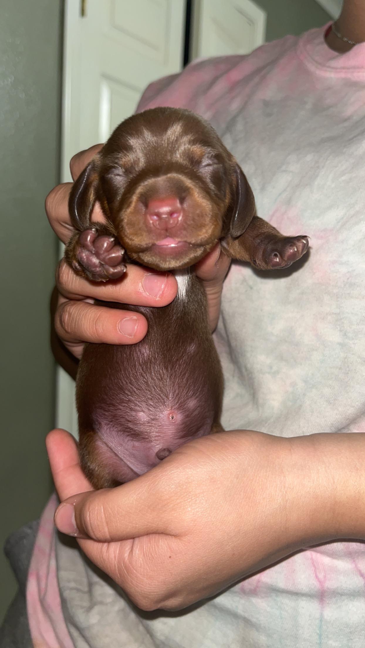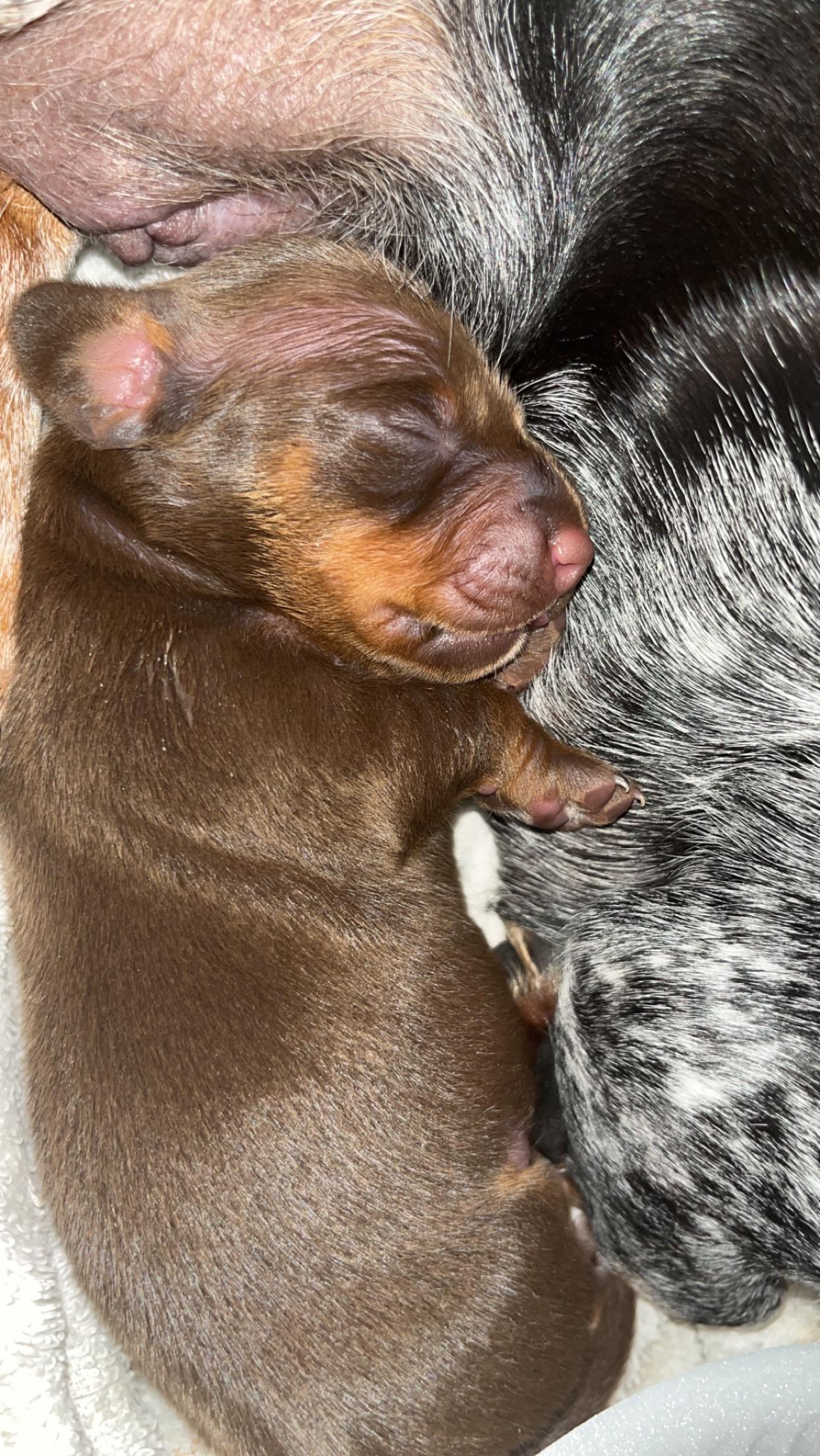 Willadale is a female Dachshund. Carefully selected as a great representative of her breed, Nicole decided to make her part of their program. Nicole has passed Good Dog’s screening process, which involved a review of their breeding practices, environment, and the mental and physical health of their dogs.