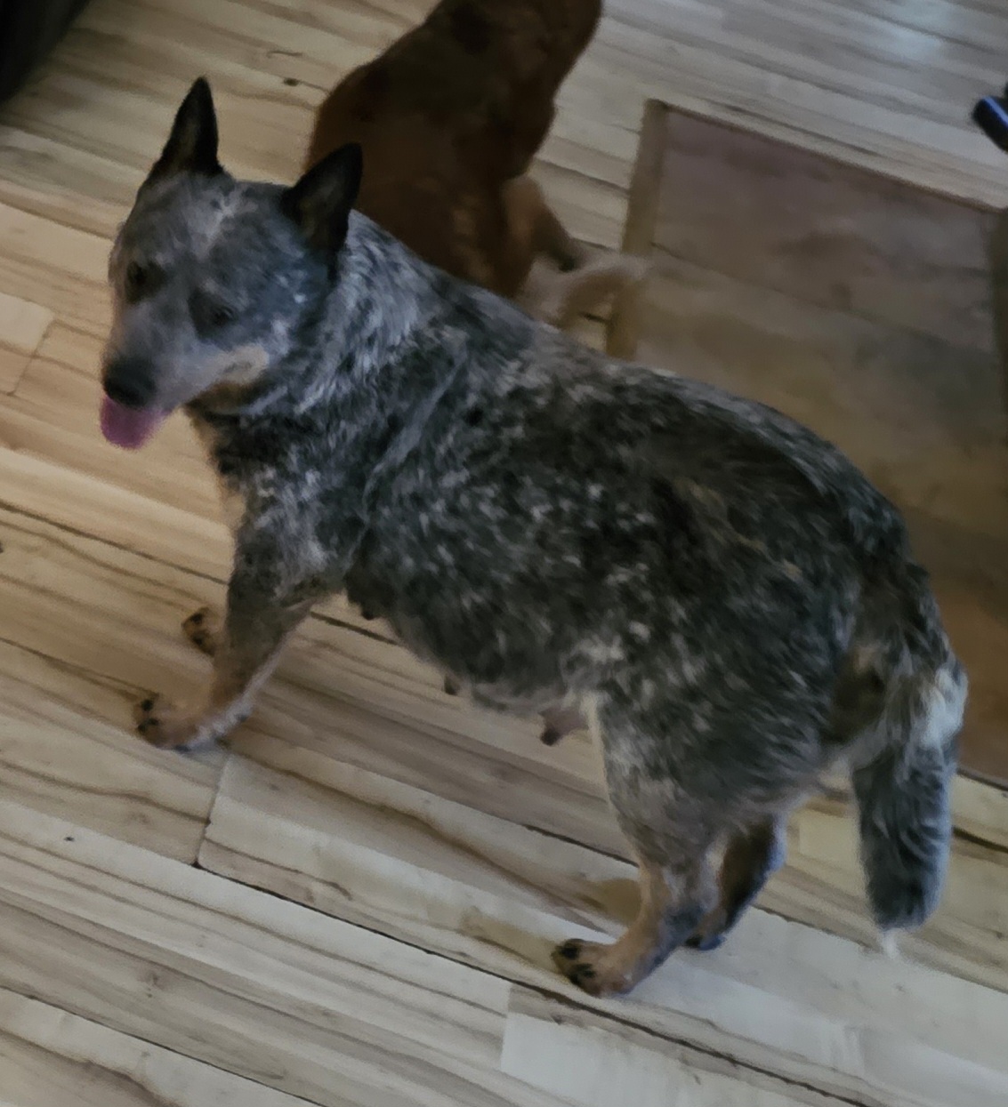Sugarbee is a female Australian Cattle Dog. Carefully selected as a great representative of her breed, JoAnn decided to make her part of their program. JoAnn has passed Good Dog’s screening process, which involved a review of their breeding practices, environment, and the mental and physical health of their dogs.