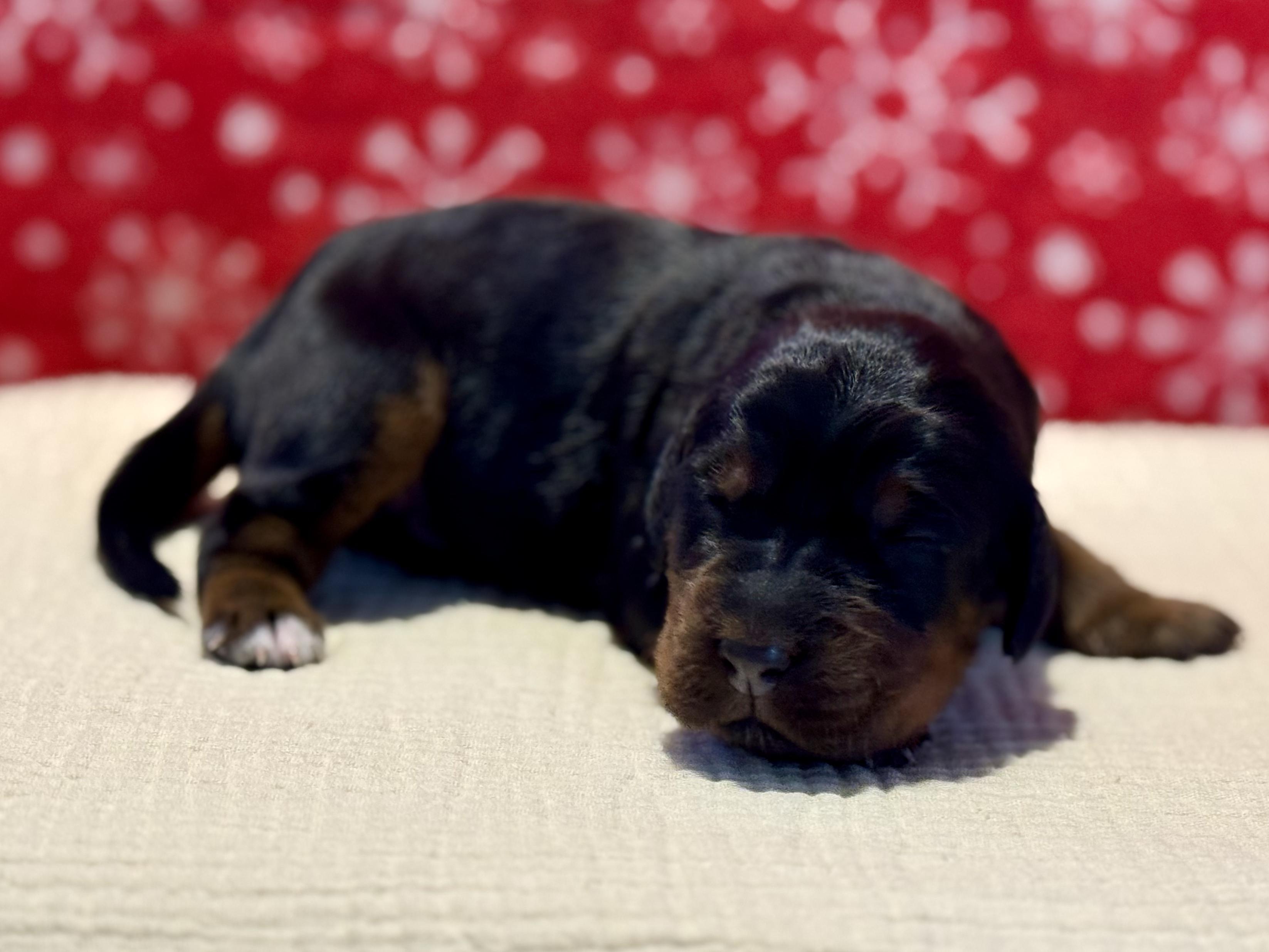 Our puppies are black and tan. Colors will vary depending on the parent dogs.