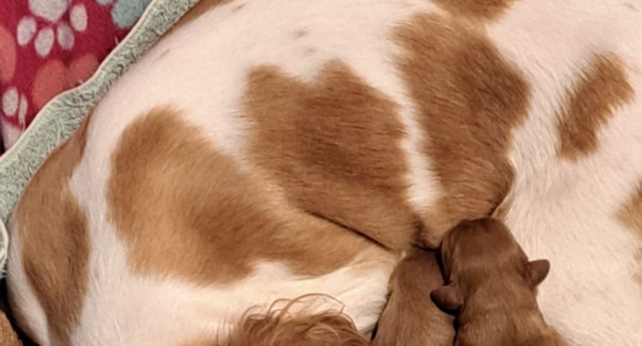 Our puppies are blenheim. Colors will vary depending on the parent dogs.