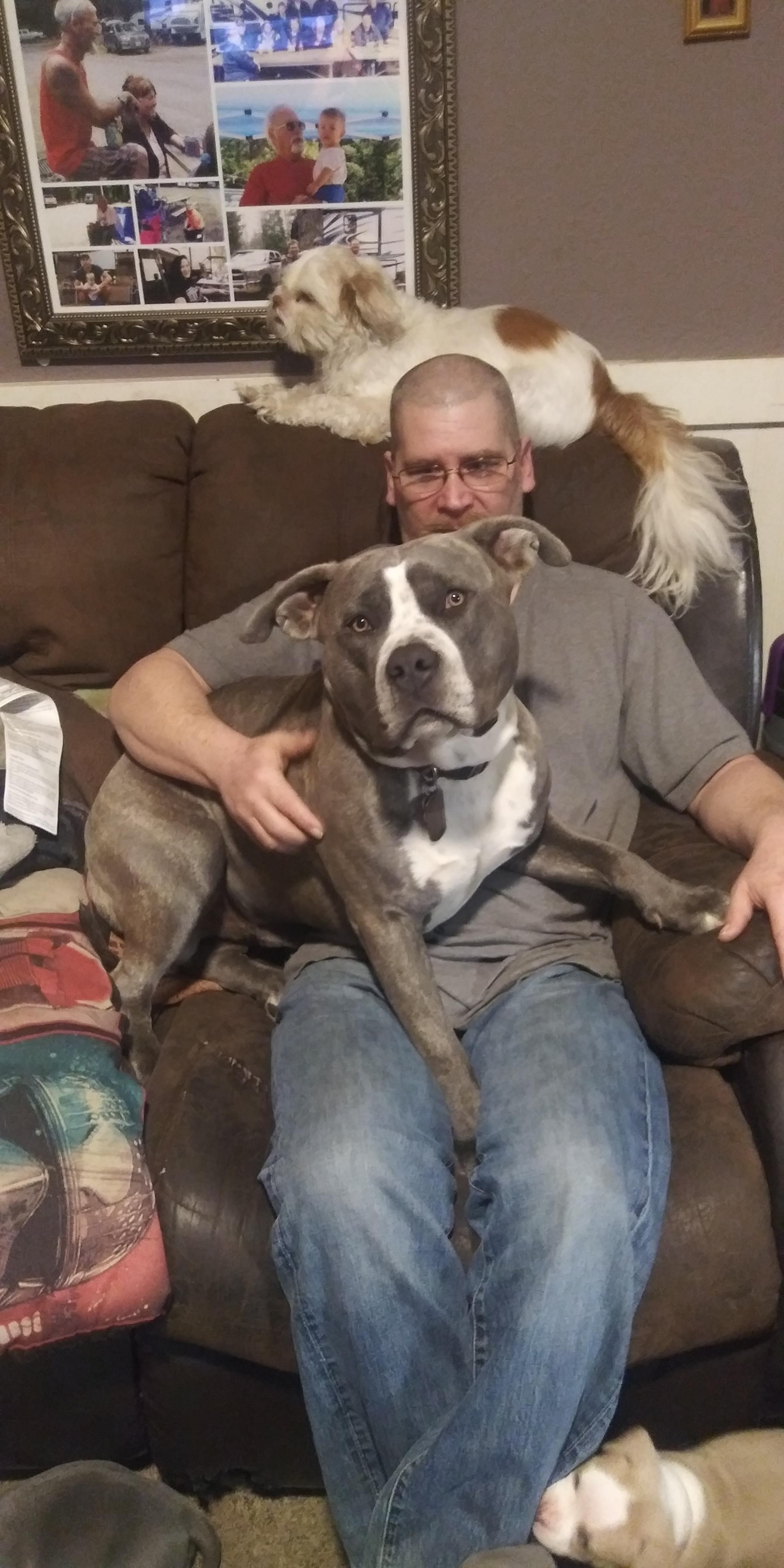 Hank is a male American Bully. Carefully selected as a great representative of his breed, Hiedi decided to make him part of their program. Hiedi has passed Good Dog’s screening process, which involved a review of their breeding practices, environment, and the mental and physical health of their dogs.