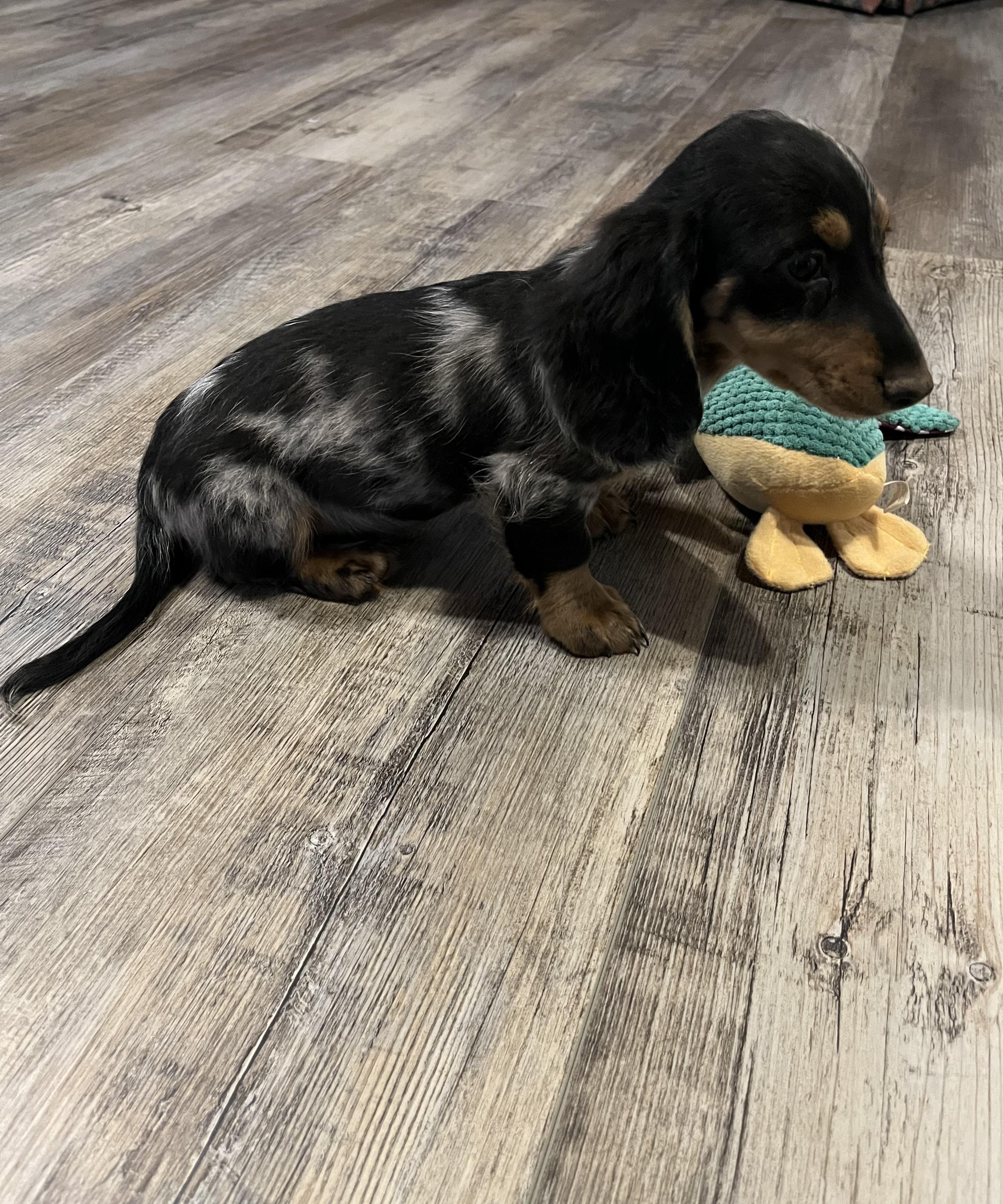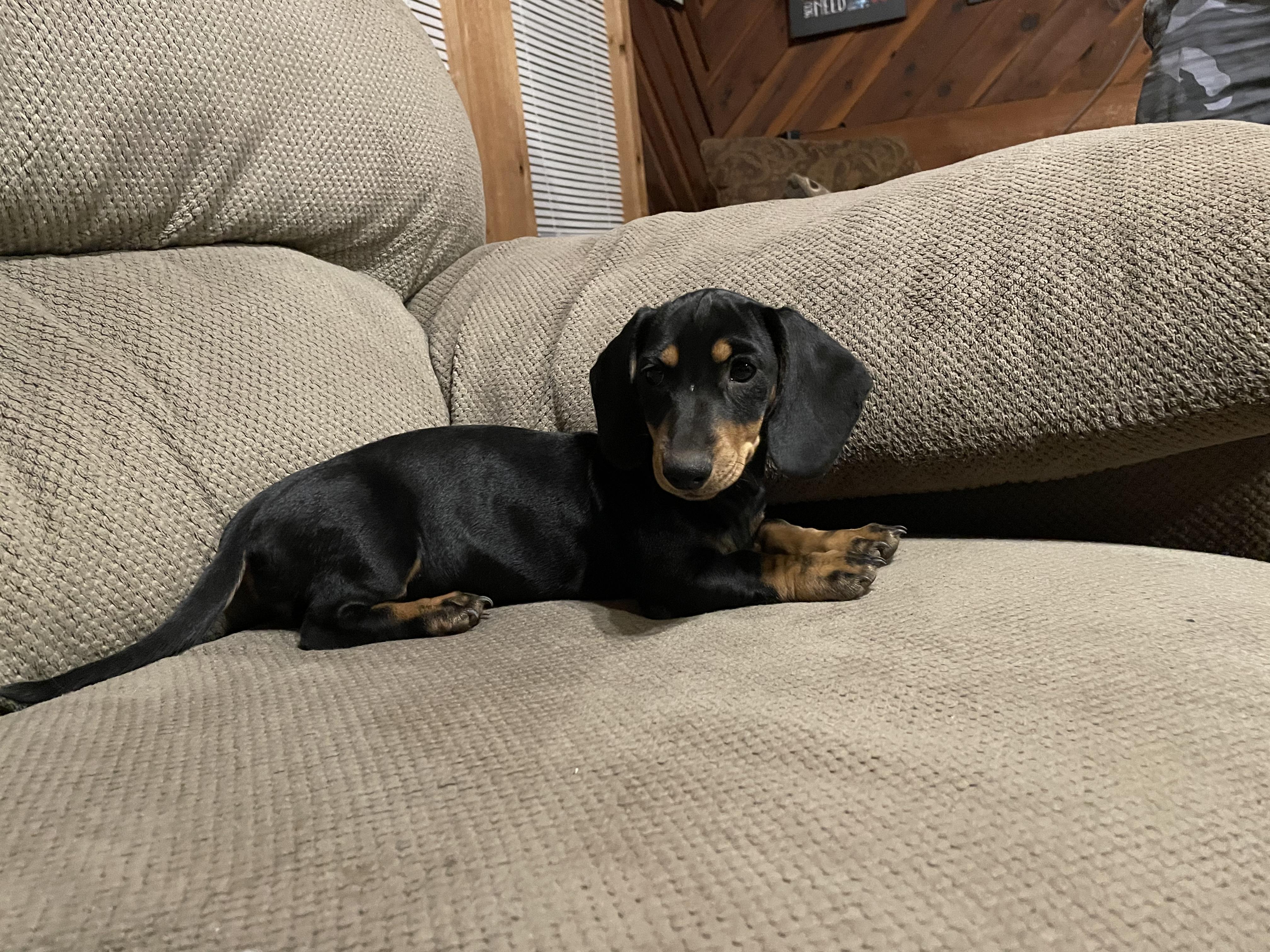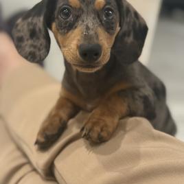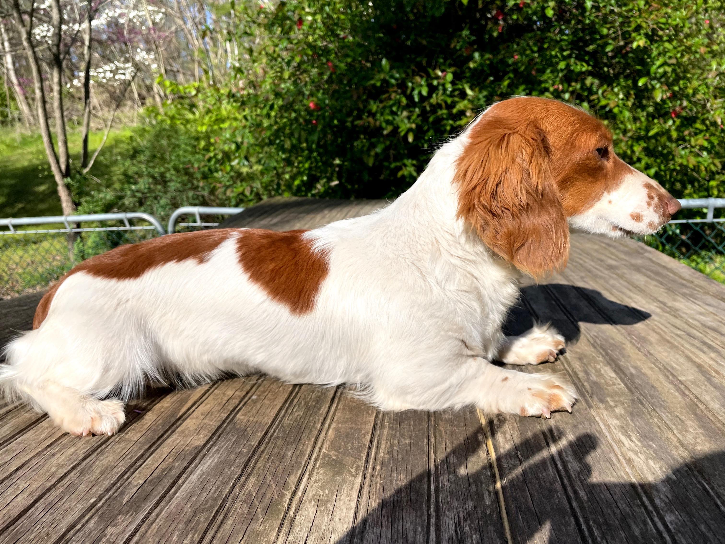 Pistol is a male Dachshund. Carefully selected as a great representative of his breed, Kathy decided to make him part of their program. Kathy has passed Good Dog’s screening process, which involved a review of their breeding practices, environment, and the mental and physical health of their dogs.
