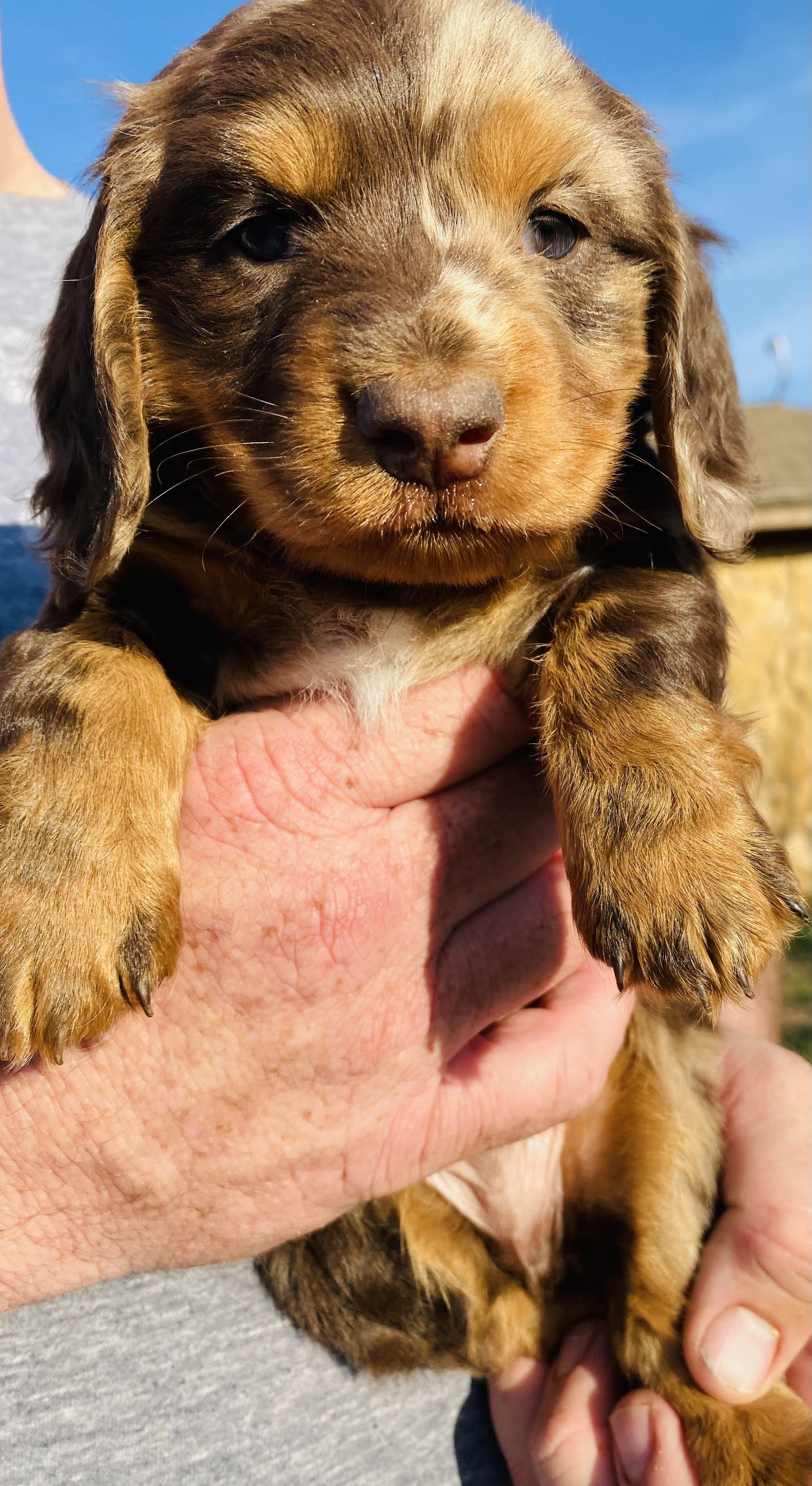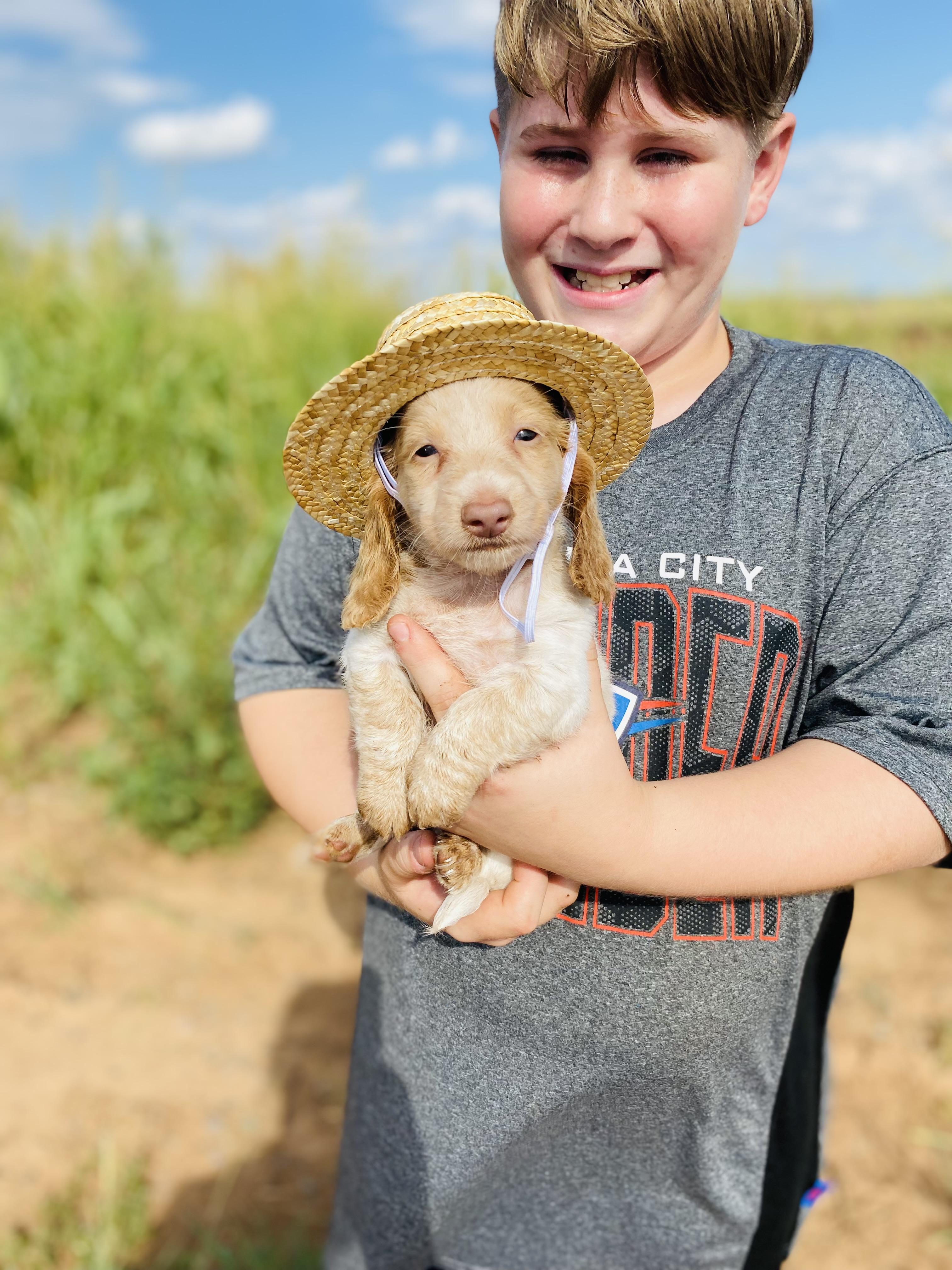 I'm Rashell J., the breeder behind Johnson Prairie Pups located in Altus, OK. We're a small family program that enjoys the hobby of raising adorable, happy Dachshund puppies for other loving families. They’re a daily part of everything we do until they’re ready to join their forever homes. We are looking for homes that will provide our puppies with the same level of love and care!
