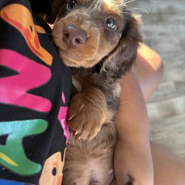 Rashell was amazing! I had been searching for almost a year for a perfect breeder for a mini long hair dachshund. I kept getting stuck with all the scams until I found Rashell, she was open to video call and to answer any of my questions. She sent pictures weekly to show my little Chai’s progress as she grew. She also sent home food, treats, puppy pads, and her all her paper work with me. We absolutely love our little Chai and so does my other dog Coco, he found his partner for life! She’s 10 weeks now, we can’t wait to see her grow 🩷