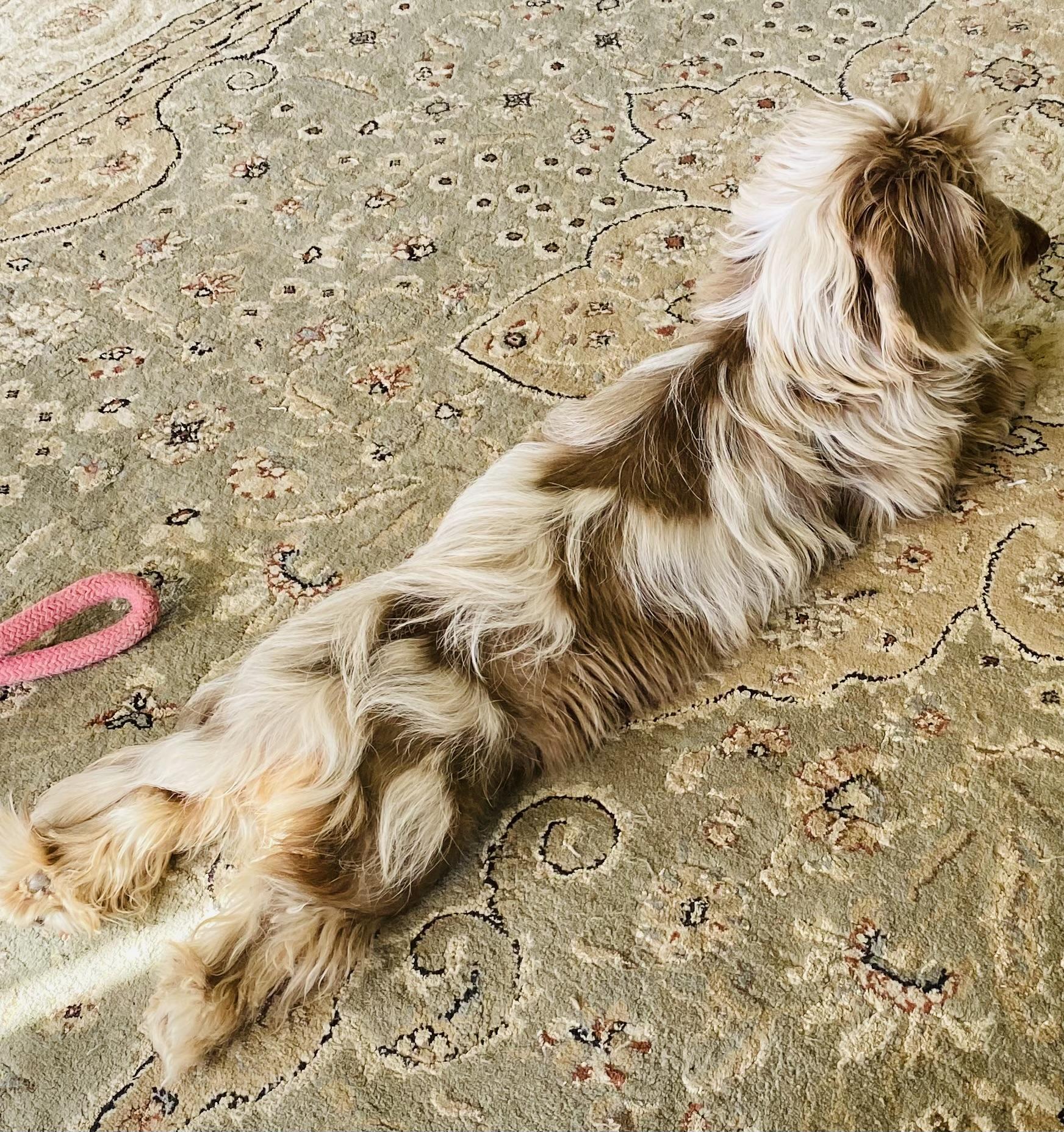 Rapunzel is a silkie wire hair. She is shaved for summer in her profile picture.