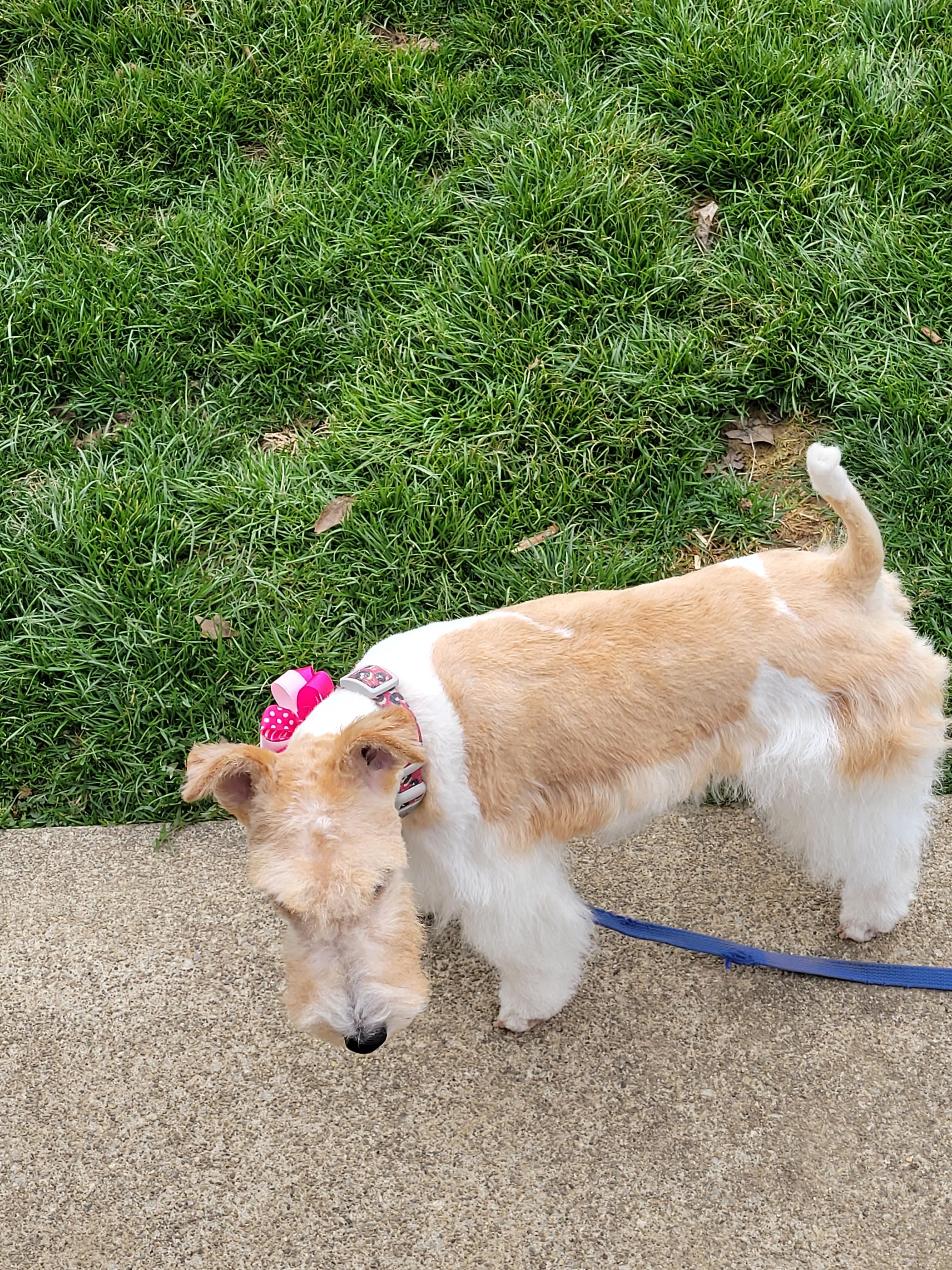 Dixie is a female Wire Fox Terrier. Carefully selected as a great representative of her breed, Bob decided to make her part of their program. Bob has passed Good Dog’s screening process, which involved a review of their breeding practices, environment, and the mental and physical health of their dogs.