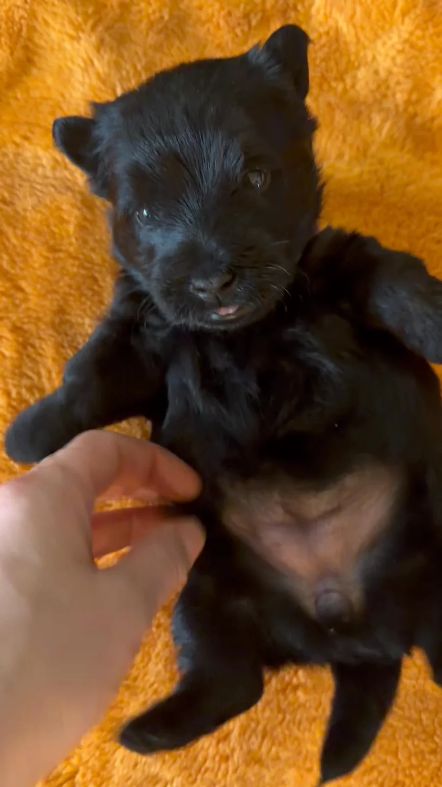 Sweet Piper just hit a big milestone—those adorable ears are officially UP! 🖤🐾