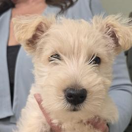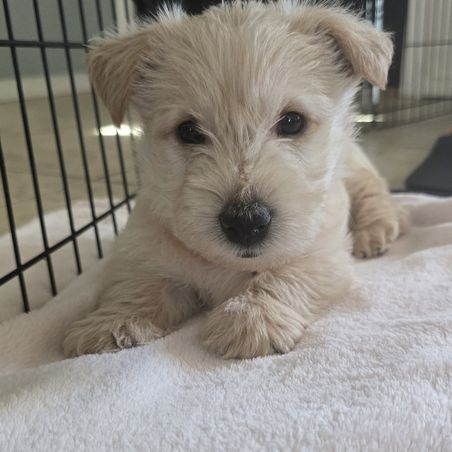 Mayela was a pleasure to work with from the very start and throughout the process from our first inquiry through the Good Dog app to the big day two weeks later we met her to pick up the newest member of our family. Most especially, we deeply appreciated the large number of photos and videos she shared of our puppy in the intervening time as it gave us a great insight into her personality and also allowed us to see the environment in which she was raised which was otherwise impossible as we were 8 hours apart. It helped calm any fears we might have had with purchasing a puppy online from a breeder we had never met. It also prepared us for our new little girl's incredible personality before we ever got to meet her in person. Furthermore, Mayela was incredibly flexible and responsive when it came to the big day with her willingness to meet us halfway between our homes which made what could have been a traumatic event for our young puppy far less painful and far less stressful than a potential multi day 8+ hr trip each way or a flight with a stranger from Albuquerque to Denver. It also allowed us to meet our puppy's father which we also appreciated as it really gave us a glimpse of her future as she seemingly mirrors him in many ways. Her love and knowledge of the breed was evident from the start and we immediately felt comfortable with her. Furthermore, she put a great deal of effort into socializing her puppies from an early age which has shown through with her immediate comfort during car rides, when meeting new dogs and with navigating new situations. We are deeply grateful for her efforts and we would definitely work with her again if and when we decide to expand our family in the future. We have a new healthy and thriving member of our family thanks to her passion and dedication to raising Scottish Terriers.