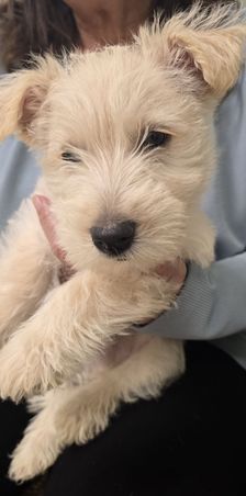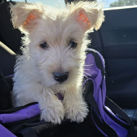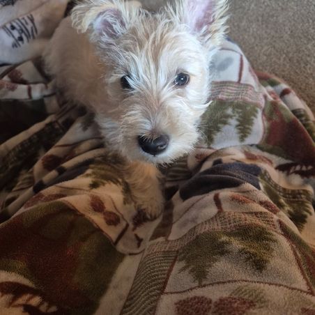 We just picked up our puppy Archie. Mayela from Johnson's Highland Terriers was a joy to work with! We really liked seeing how all the puppies were a part of her home. Mayela kept us updated all the time with cute photos & videos of the puppies. We Love Scotties & Mayela definitely does too! She met us 1/2 way so we could get Arhie & drive back home the same day. Archie not only came with a blanket with Mom's scent but also some food, treats, water & a toy. So Awesome! Thank you so much Mayela. We recommend her to anyone wanting a puppy. She is Top Notch, kind & considerate.