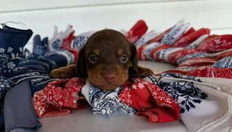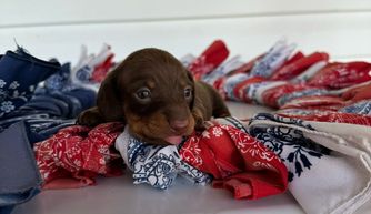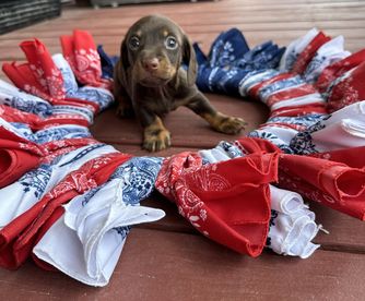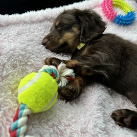 Jared and Alexis were so awesome to work with. The day I reserved Maki(Jingle birhtname) they sent updates like video regularly and connecting online with me. I waited almost 3 months to write this review, Maki is now almost 5 months, he is very healthy playful beautiful puppy, he loves to play fetch. He didn't had a hard time adjusting to our home, and knows his name right away. I highly recommend Johnson's Weiner Farm.