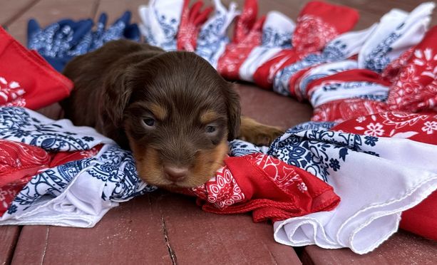 I'm Jared & Alexis J., the breeder behind Johnson’s Weiner Farm located in Live Oak, FL. We’re devoted to ensuring there are healthy puppies for others to enjoy and we do so by responsibly growing this incredible breed. We are a simple, family-run breeding program offering loving and loyal companions to others. We focus on quality care and health with each litter we raise.