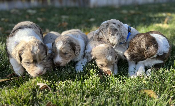 Our puppies include red merle and red tri-color. Colors will vary depending on the parent dogs.