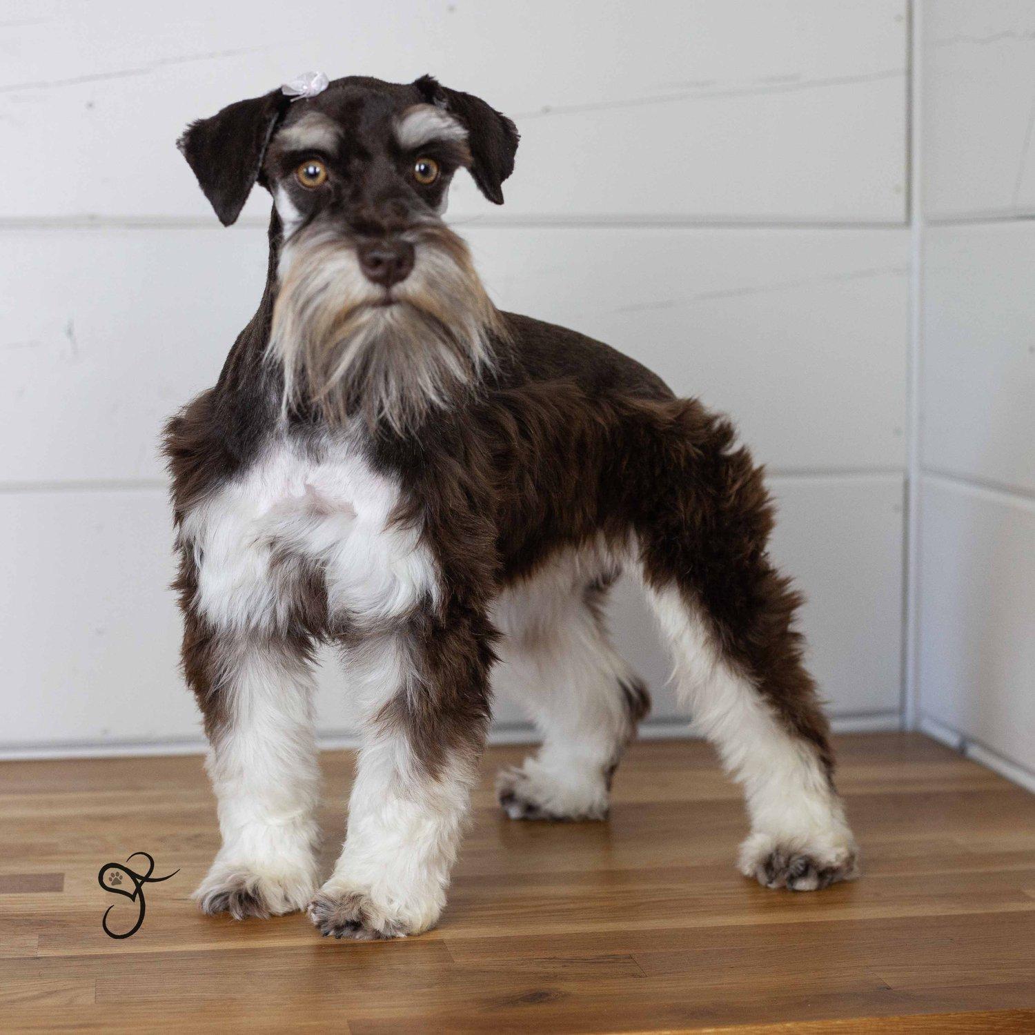 We had such a wonderful experience going through Good Dog to JoJo's Schnauzers from start to finish! Lacy communicates so well during the entire process. I asked so many questions I was sure Lacy thought I was a crazy lady, but she answered every question with detailed information and photos and made us feel so comfortable with our decision. We have had our baby girl for a couple of weeks now and she is just amazing! The first night home she slept throughout the night in her crate without a peep. She is the most cuddly, smart, and spicy puppy. She has easily slid into our daily life, she is so confident of herself, loves her crate, loves kids and just seems to go with the flow! We couldn't be happier and just can't wait for all the fun we are going to have with her. I would 100% recommend JoJo’s to all my friends and would not hesitate to tell anyone looking for a schnauzer puppy. We also loved that Lacy allowed us to come meet her and see the entire puppy family to make our decision. They really are one of a kind breeders with so much love for their dogs and the puppies they bring into the world. Thanks again Lacy!! We are just in love with this baby girl and feel so lucky that we found you! Tracy C.
