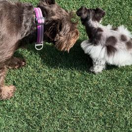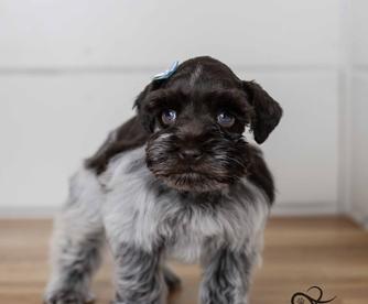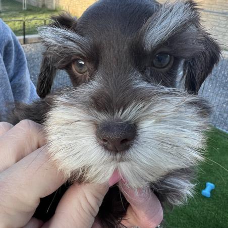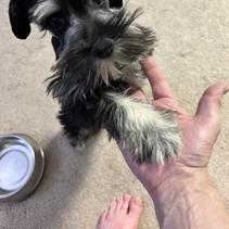 Lacey was a joy to work with. She was incredibly responsive, sent us videos before we met, and made sure Ivy had a clean bill of health from the vet before we picked her up. She was also very accommodating with the pickup location, which made things much easier for us. Ivy is exactly as described—tiny but fearless—and has taken to our two older Schnauzers immediately. Thank you, Lacey!