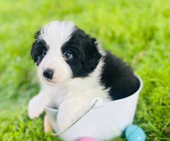 Our puppies are black and white. Colors will vary depending on the parent dogs.