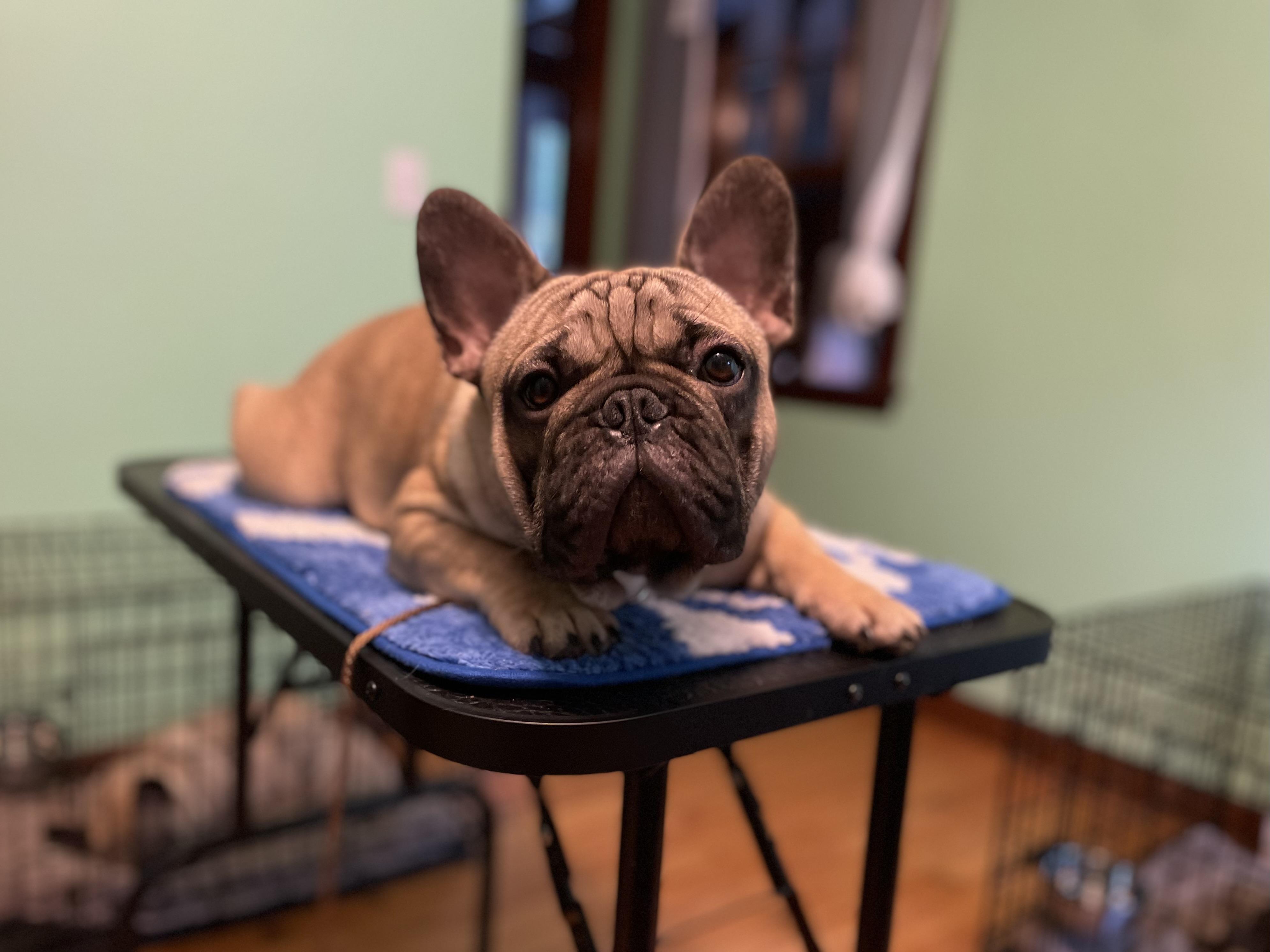 Kidd is a male French Bulldog. Carefully selected as a great representative of his breed, Barbara decided to make him part of their program. Barbara has passed Good Dog’s screening process, which involved a review of their breeding practices, environment, and the mental and physical health of their dogs.