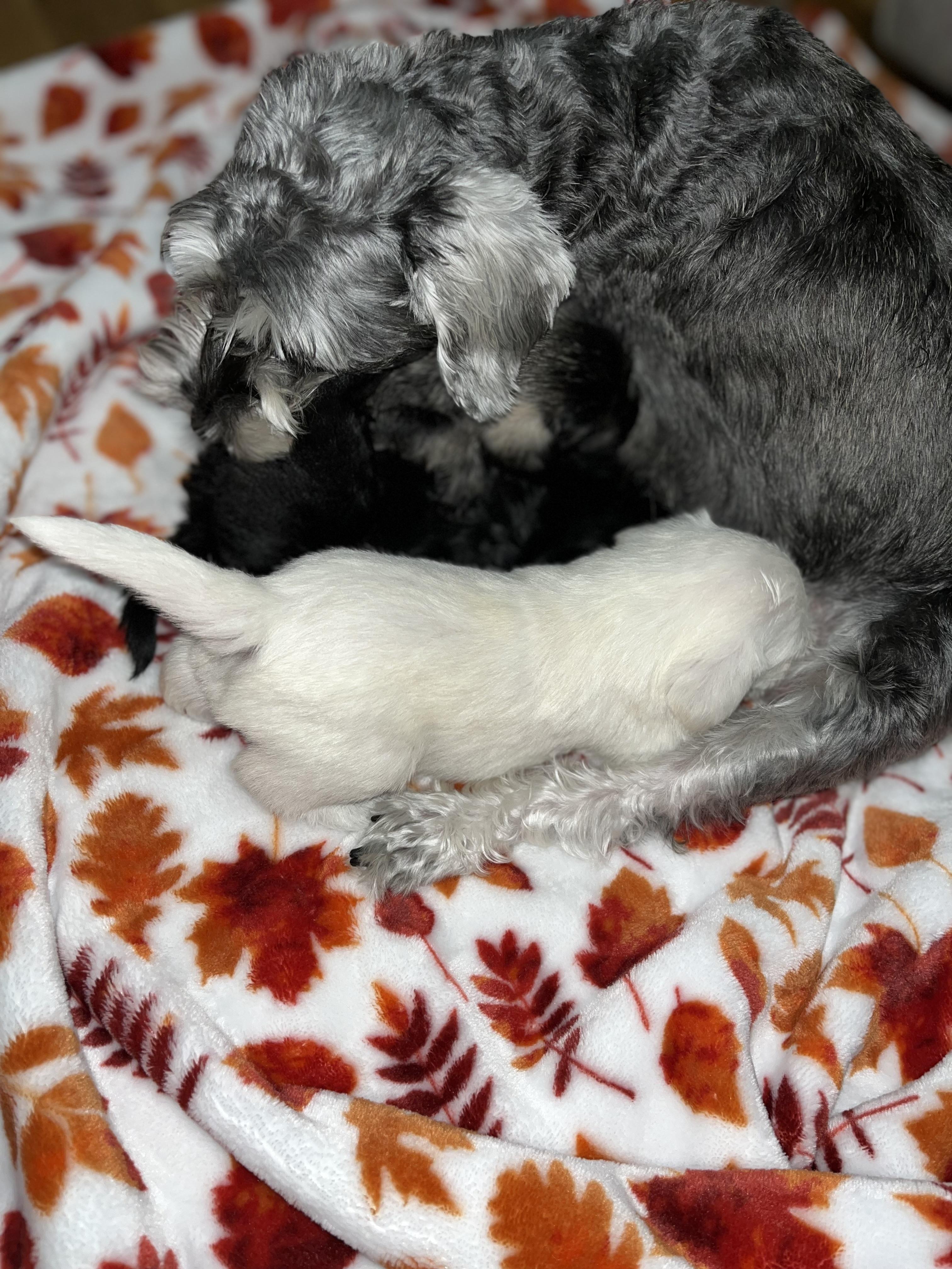 Bella is a female Miniature Schnauzer. Carefully selected as a great representative of her breed, Shameka decided to make her part of their program. Shameka has passed Good Dog’s screening process, which involved a review of their breeding practices, environment, and the mental and physical health of their dogs.