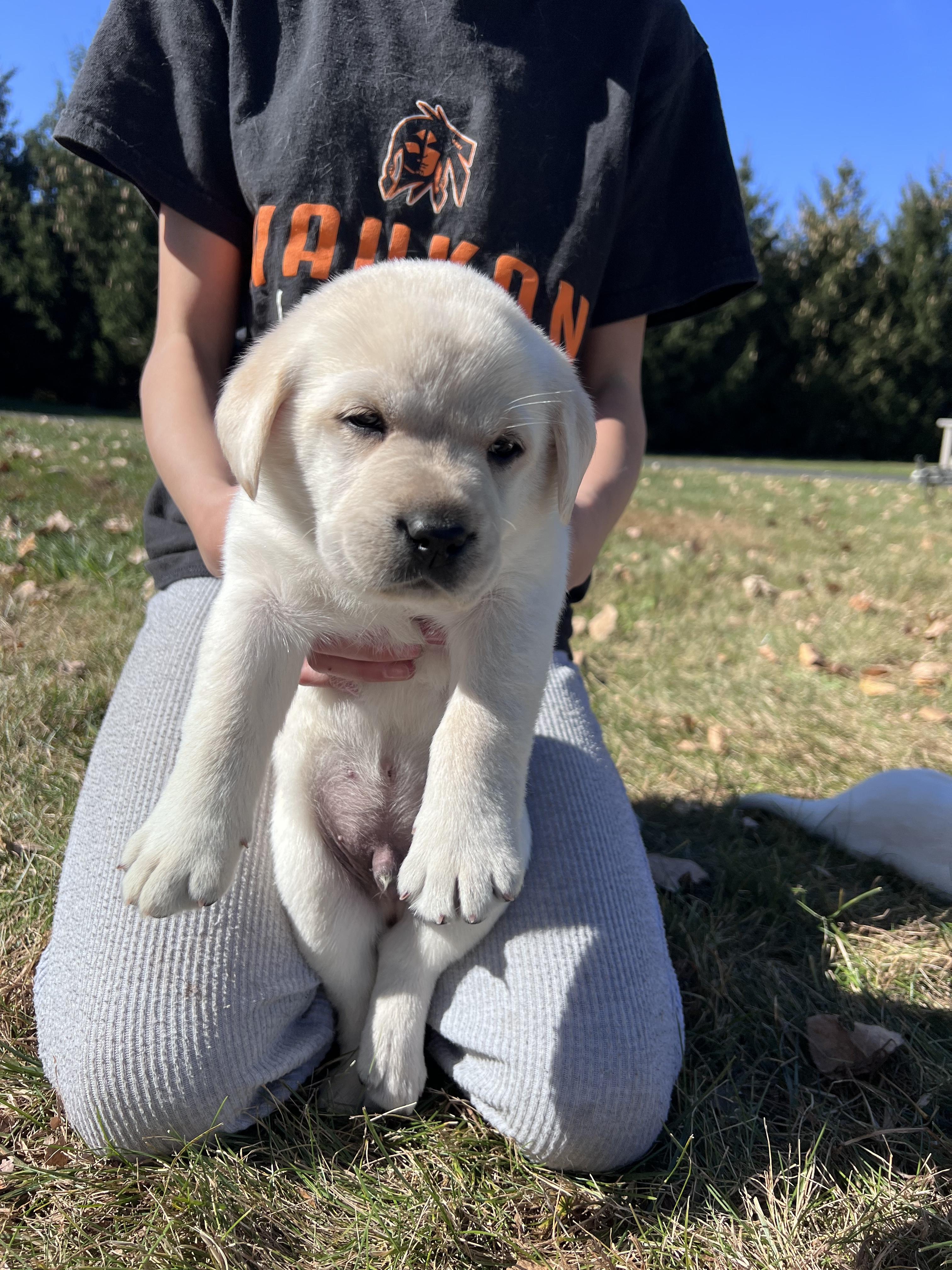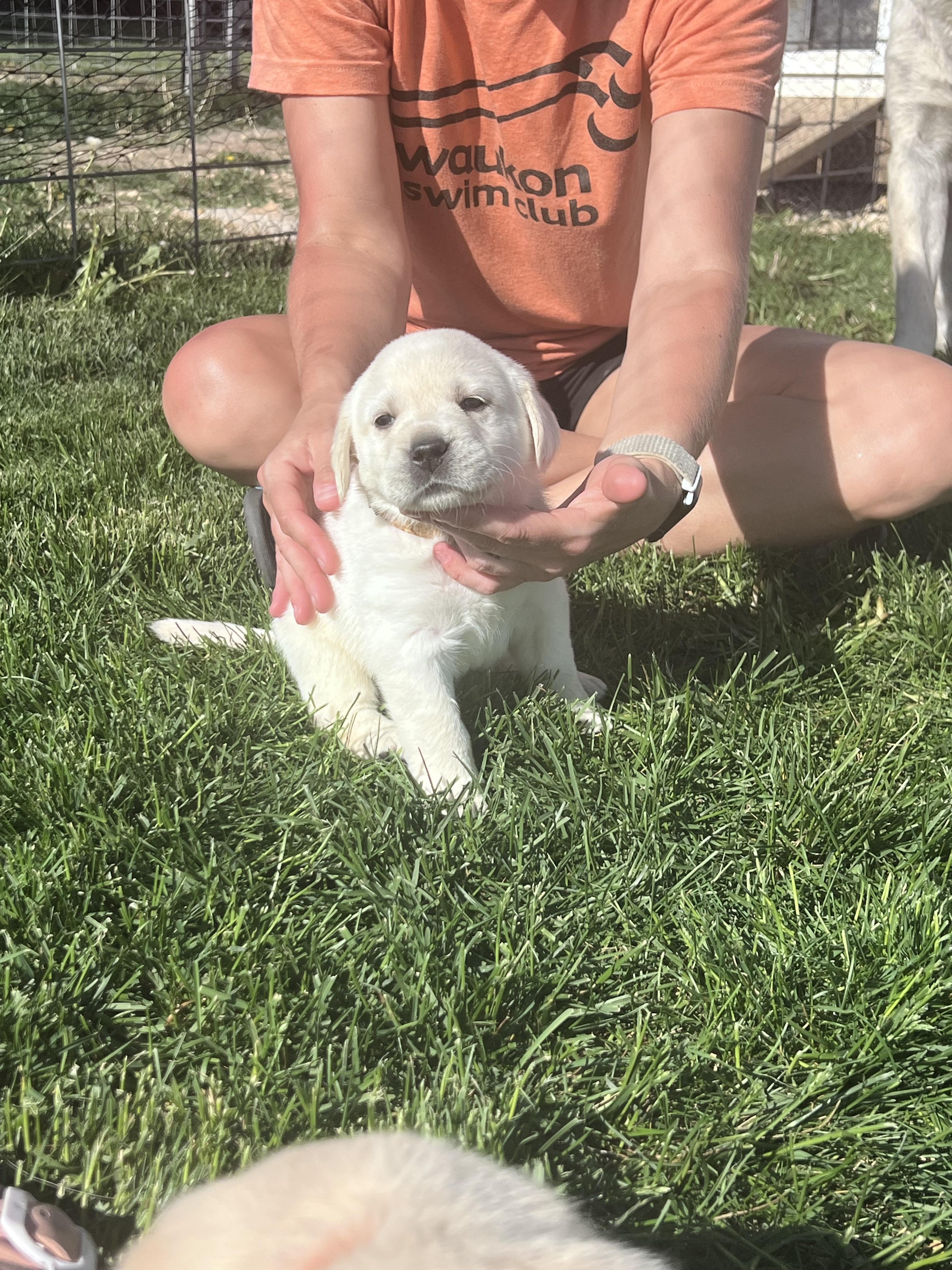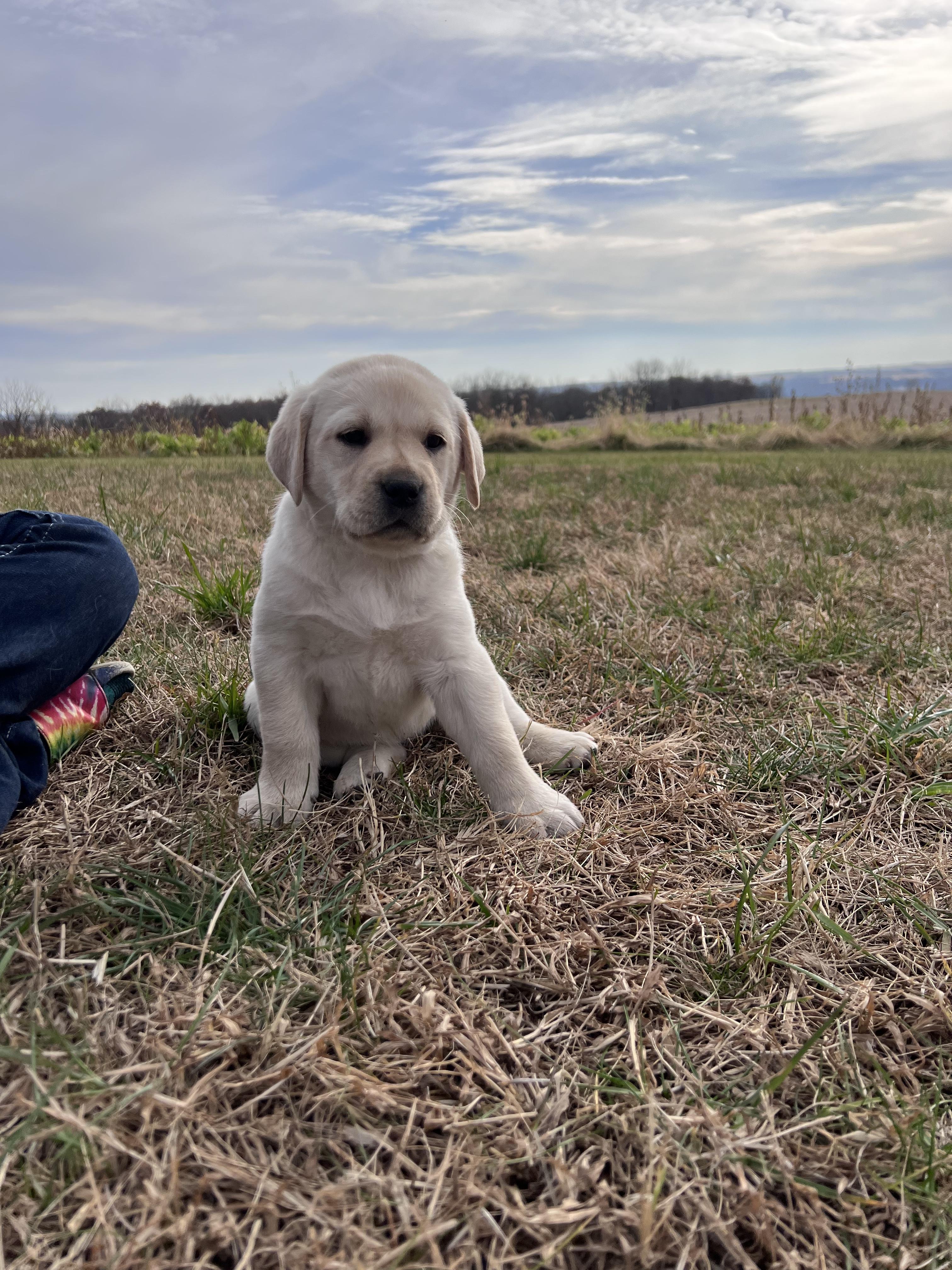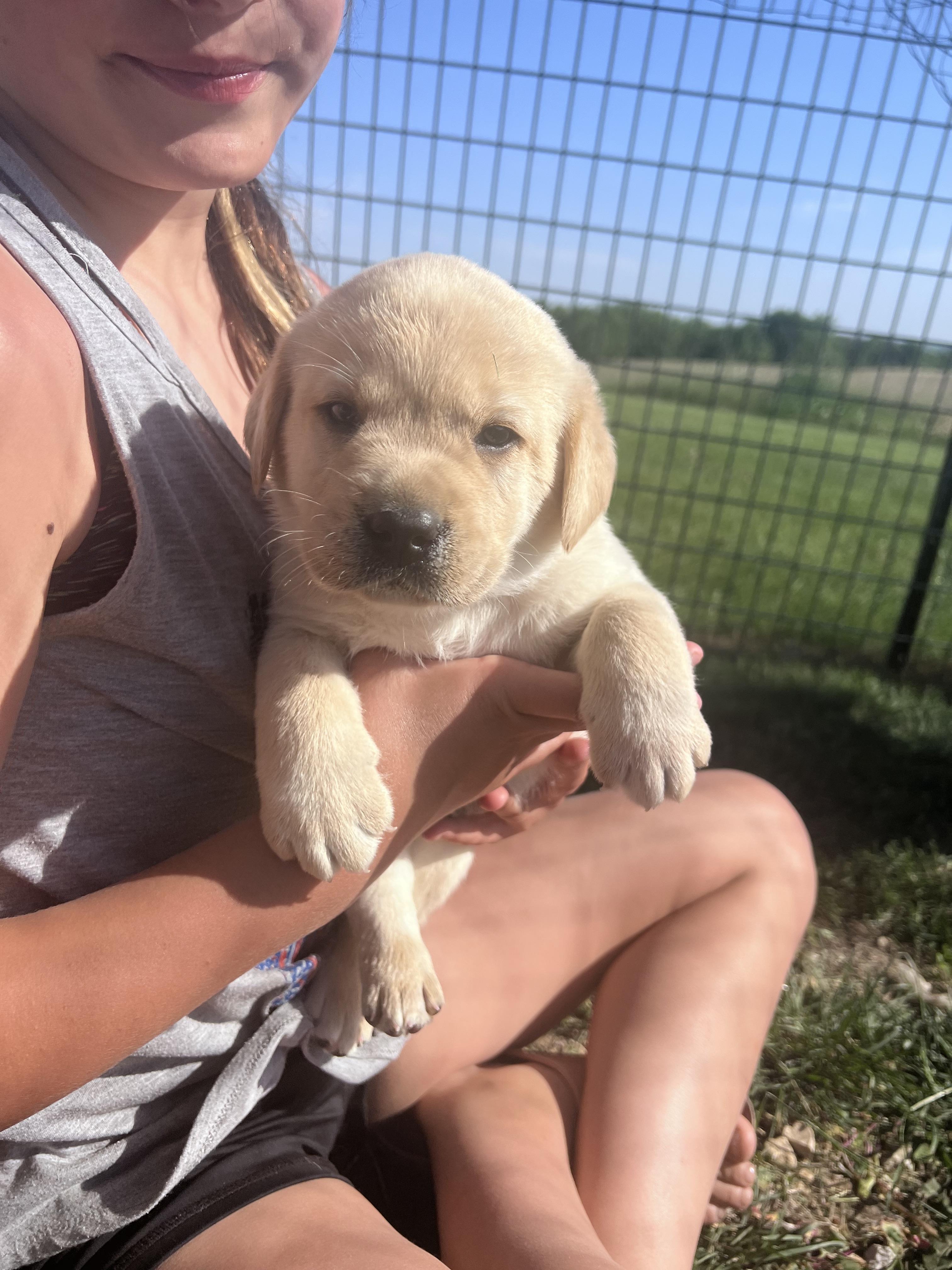 Rosie is an AKC registered yellow lab that we have raised. She is gentle and so smart. Great with our kids and other animals. Rosie has been trained on blood tracking for deer and has started training bird hunting. Great natural instincts and listens well.