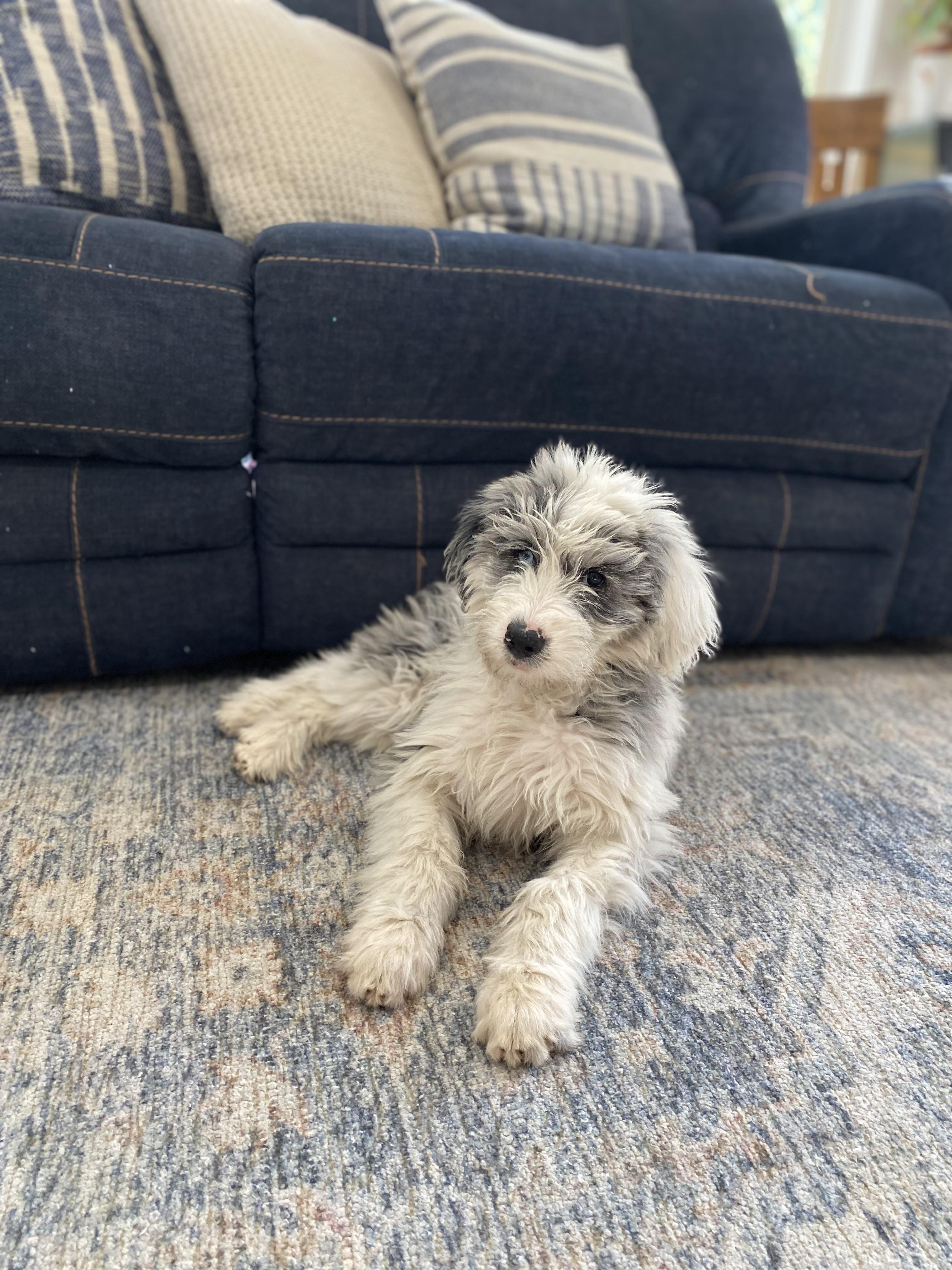 I'm Charlee B., the breeder behind Jonsies Pups located in Provo, UT. Every puppy we raise is adored as part of our family from birth. My sheepadoodle puppies have shown that they carry their moms docile personality and they love to be cuddled! They are a great addition to all folks, weather it’s a family dog with small kids to an emotional support dog when your going through hard times.